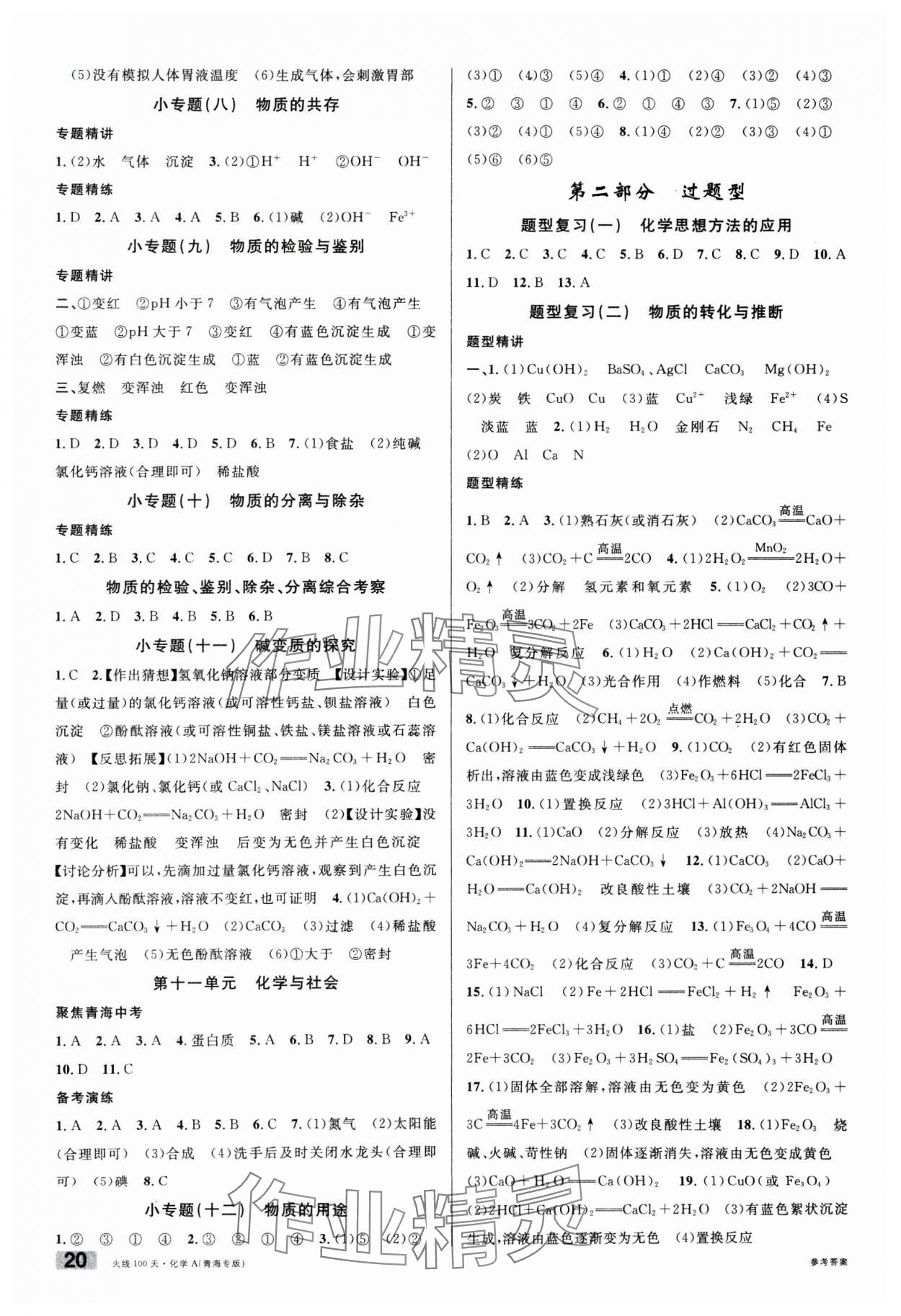 注:目前有些书本章节名称可能整理的还不是很完善,但都是按照顺序排列的,请同学们按照顺序仔细查找。练习册 2025年火线100天化学青海专版 答案主要是用来给同学们做完题方便对答案用的,请勿直接抄袭。