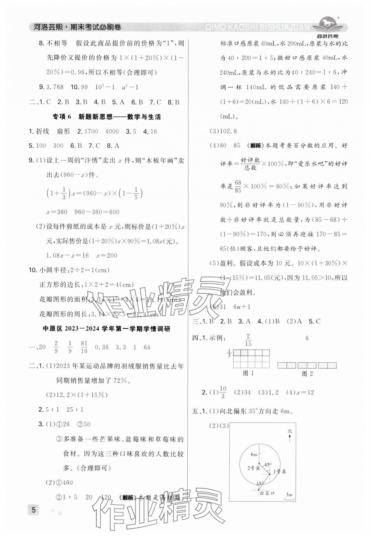 注:目前有些书本章节名称可能整理的还不是很完善,但都是按照顺序排列的,请同学们按照顺序仔细查找。练习册 2024年期末考试必刷卷六年级数学上册人教版郑州专版 答案主要是用来给同学们做完题方便对答案用的,请勿直接抄袭。
