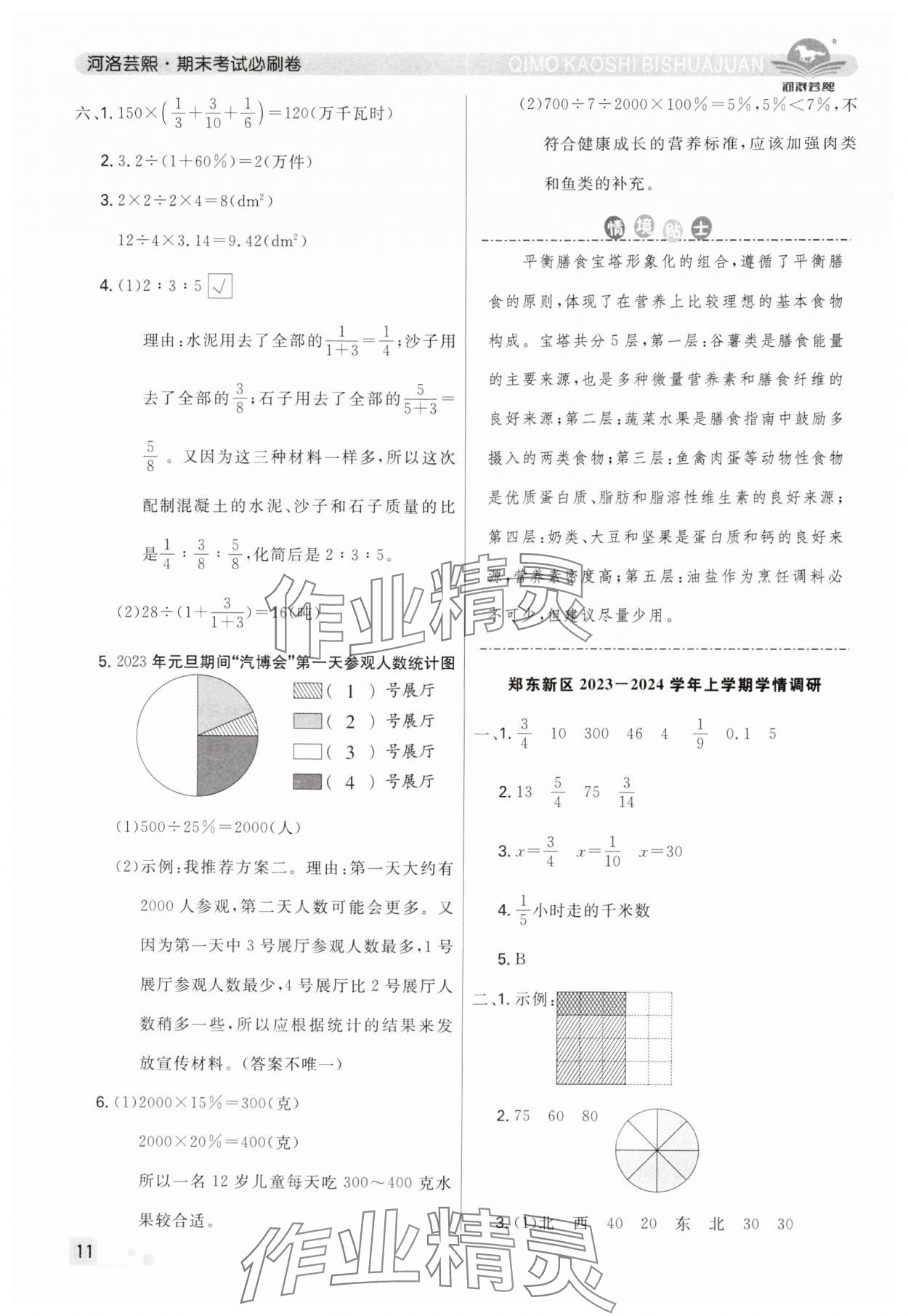 注:目前有些书本章节名称可能整理的还不是很完善,但都是按照顺序排列的,请同学们按照顺序仔细查找。练习册 2024年期末考试必刷卷六年级数学上册人教版郑州专版 答案主要是用来给同学们做完题方便对答案用的,请勿直接抄袭。