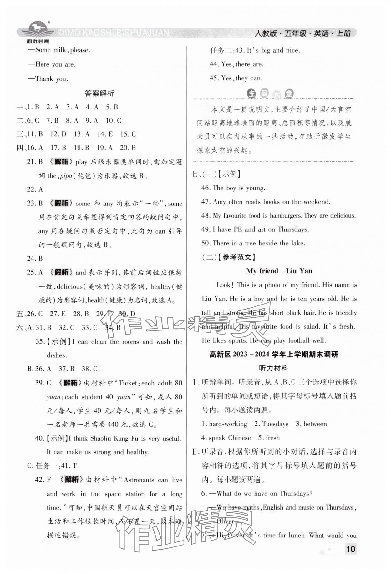 注:目前有些书本章节名称可能整理的还不是很完善,但都是按照顺序排列的,请同学们按照顺序仔细查找。练习册 2024年期末考试必刷卷五年级英语上册人教版郑州专版 答案主要是用来给同学们做完题方便对答案用的,请勿直接抄袭。