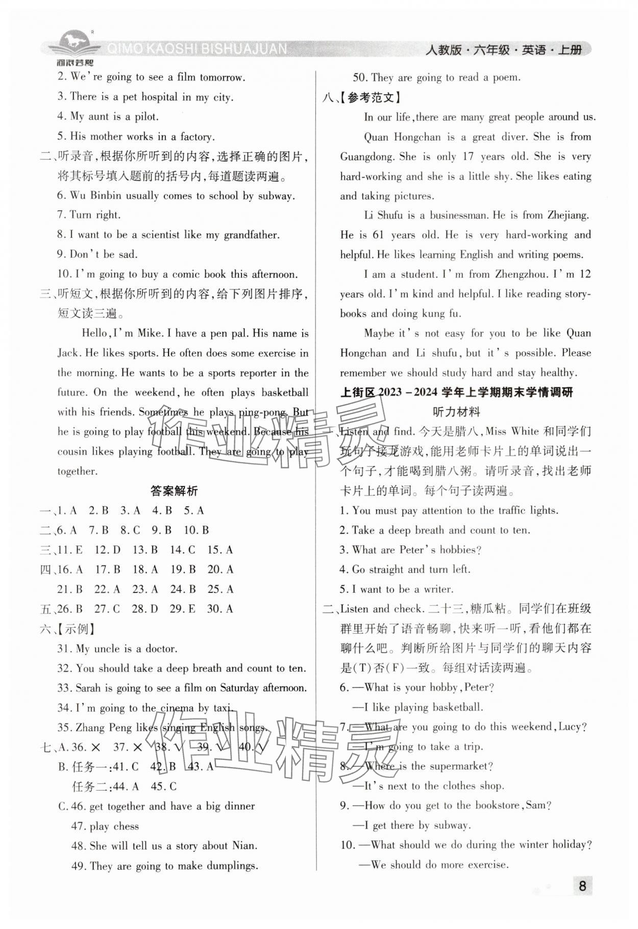 注:目前有些书本章节名称可能整理的还不是很完善,但都是按照顺序排列的,请同学们按照顺序仔细查找。练习册 2024年期末考试必刷卷六年级英语上册人教版郑州专版 答案主要是用来给同学们做完题方便对答案用的,请勿直接抄袭。