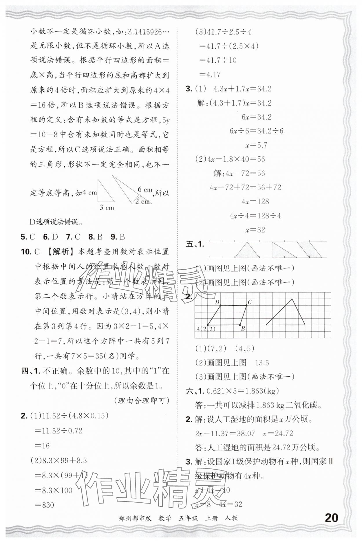 注:目前有些书本章节名称可能整理的还不是很完善,但都是按照顺序排列的,请同学们按照顺序仔细查找。练习册 2024年王朝霞期末真题精编五年级数学上册人教版郑州专版 答案主要是用来给同学们做完题方便对答案用的,请勿直接抄袭。