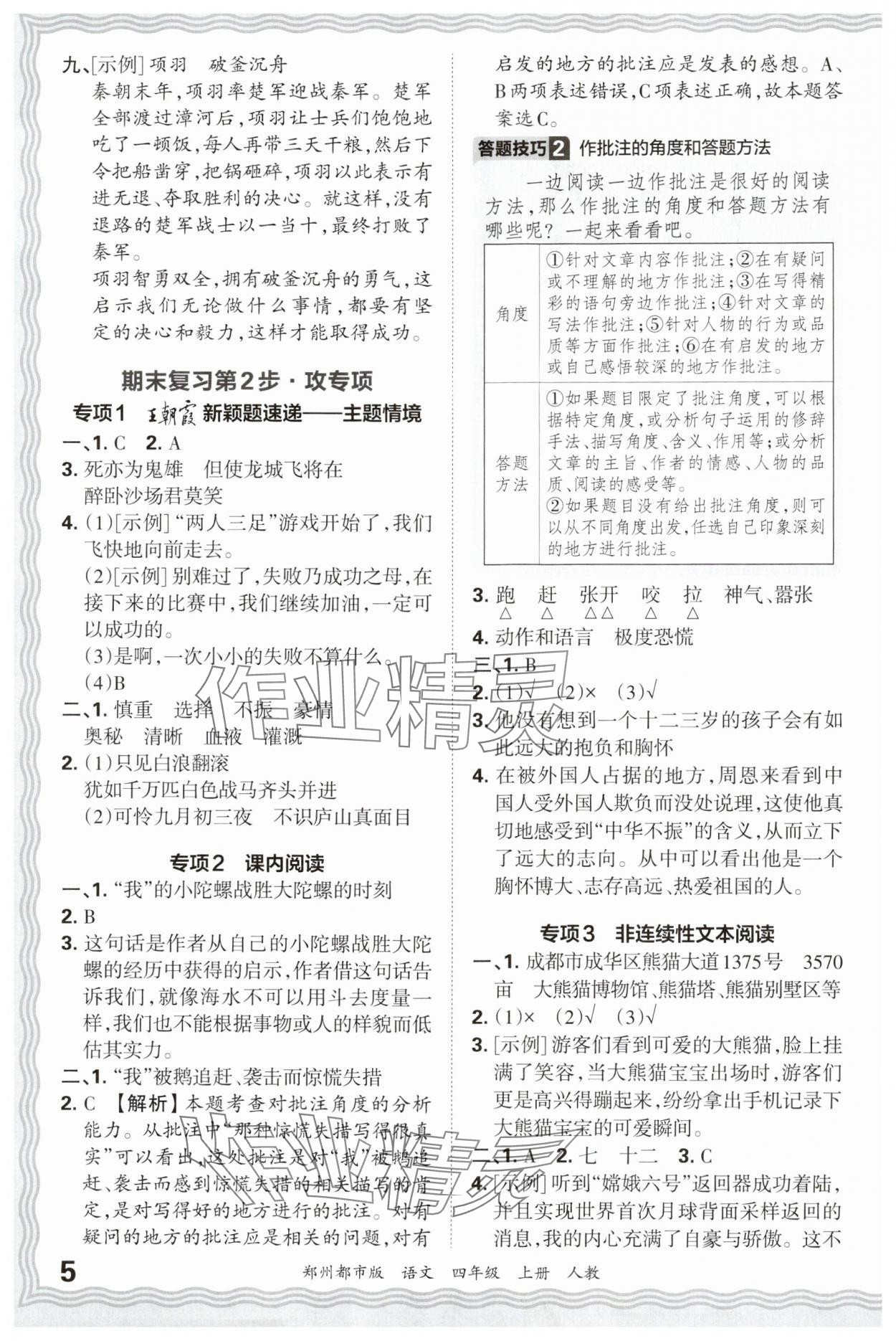 注:目前有些书本章节名称可能整理的还不是很完善,但都是按照顺序排列的,请同学们按照顺序仔细查找。练习册 2024年王朝霞期末真题精编四年级语文上册人教版郑州专版 答案主要是用来给同学们做完题方便对答案用的,请勿直接抄袭。