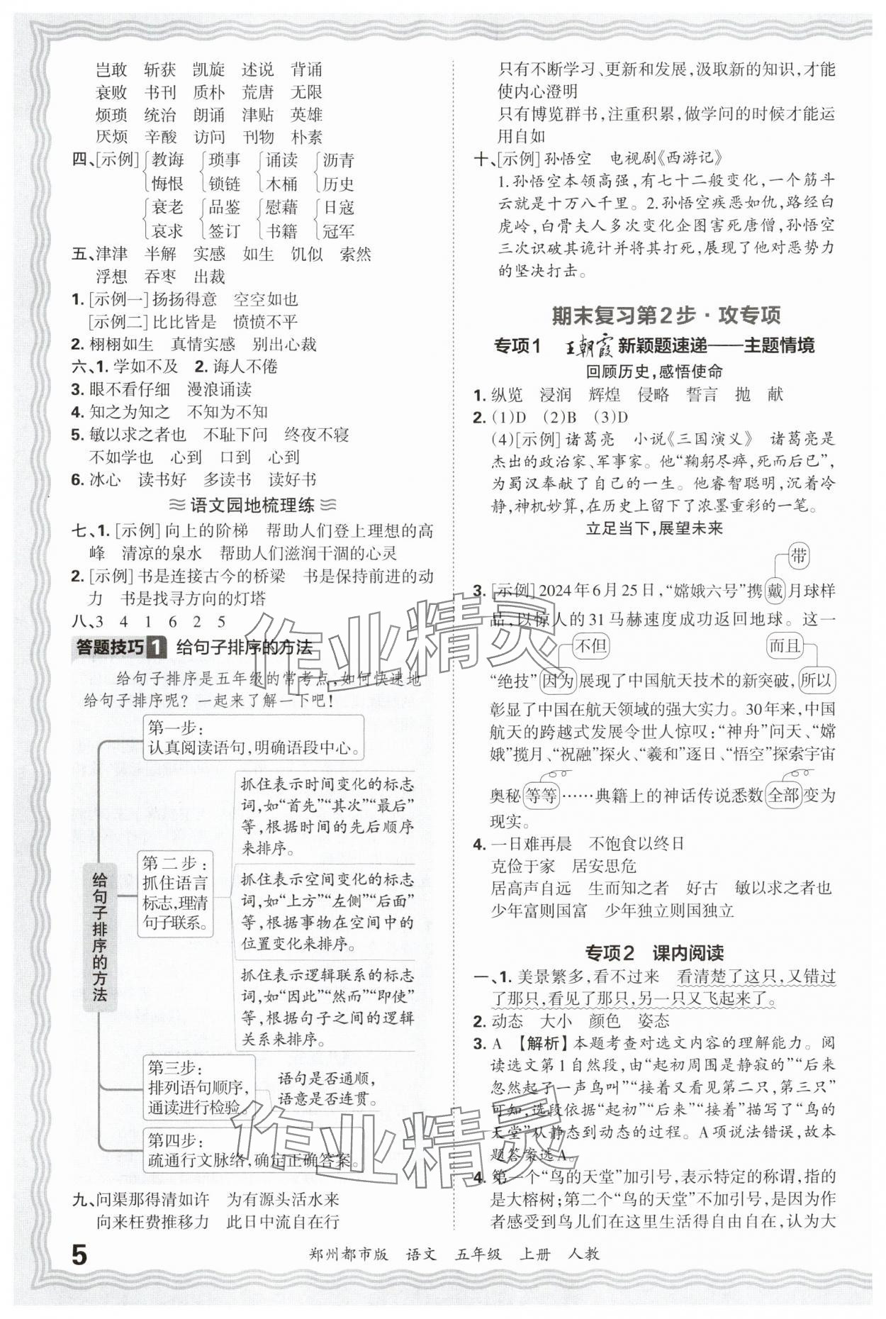 注:目前有些书本章节名称可能整理的还不是很完善,但都是按照顺序排列的,请同学们按照顺序仔细查找。练习册 2024年王朝霞期末真题精编五年级语文上册人教版郑州专版 答案主要是用来给同学们做完题方便对答案用的,请勿直接抄袭。