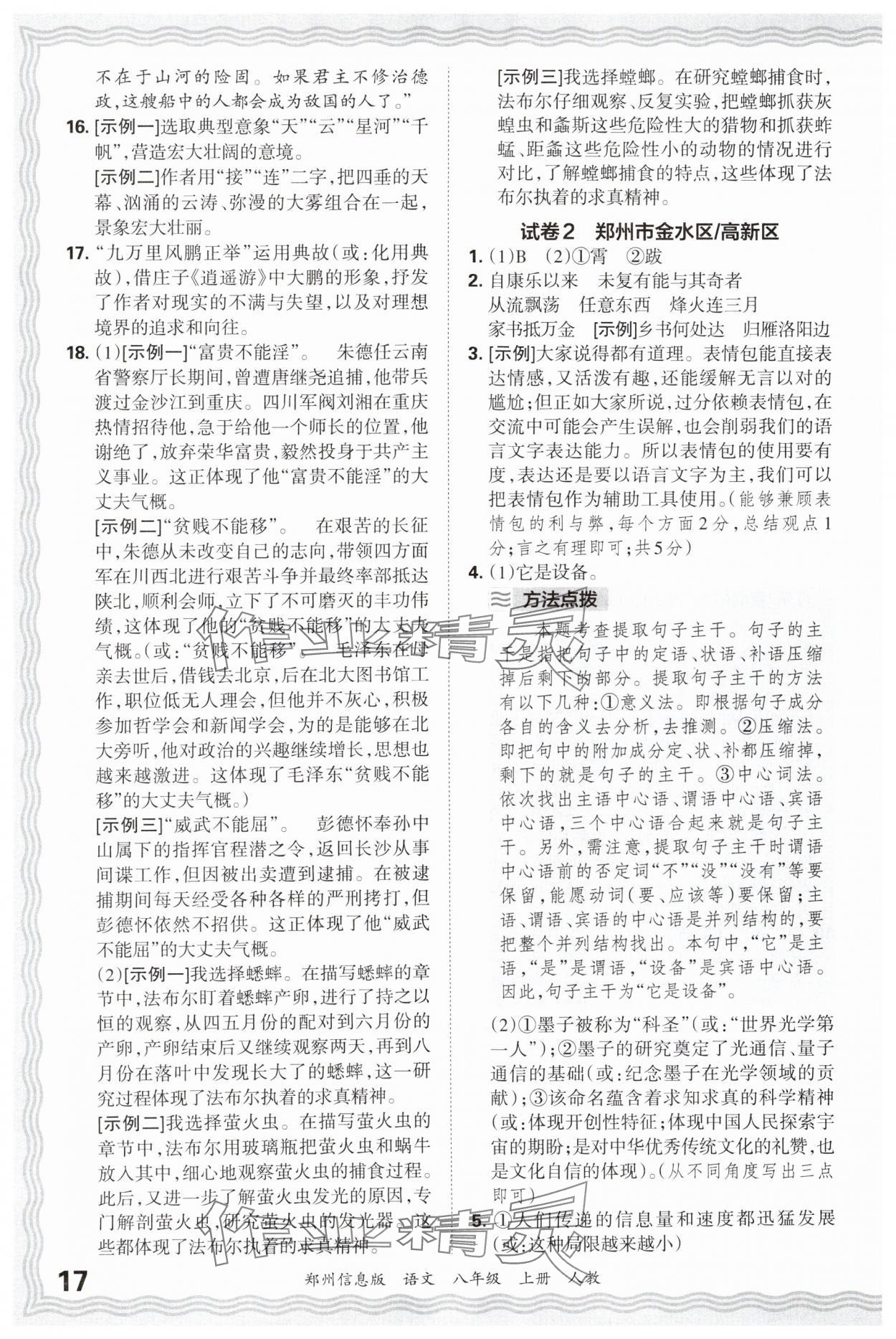 注:目前有些书本章节名称可能整理的还不是很完善,但都是按照顺序排列的,请同学们按照顺序仔细查找。练习册 2024年王朝霞期末真题精编八年级语文上册人教版郑州专版 答案主要是用来给同学们做完题方便对答案用的,请勿直接抄袭。