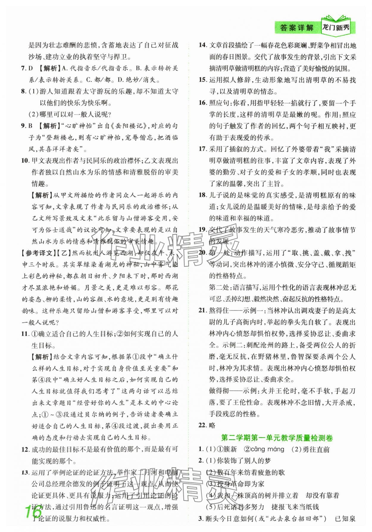 注:目前有些书本章节名称可能整理的还不是很完善,但都是按照顺序排列的,请同学们按照顺序仔细查找。练习册 2024年龙门新秀全优考卷九年级语文全一册人教版 答案主要是用来给同学们做完题方便对答案用的,请勿直接抄袭。
