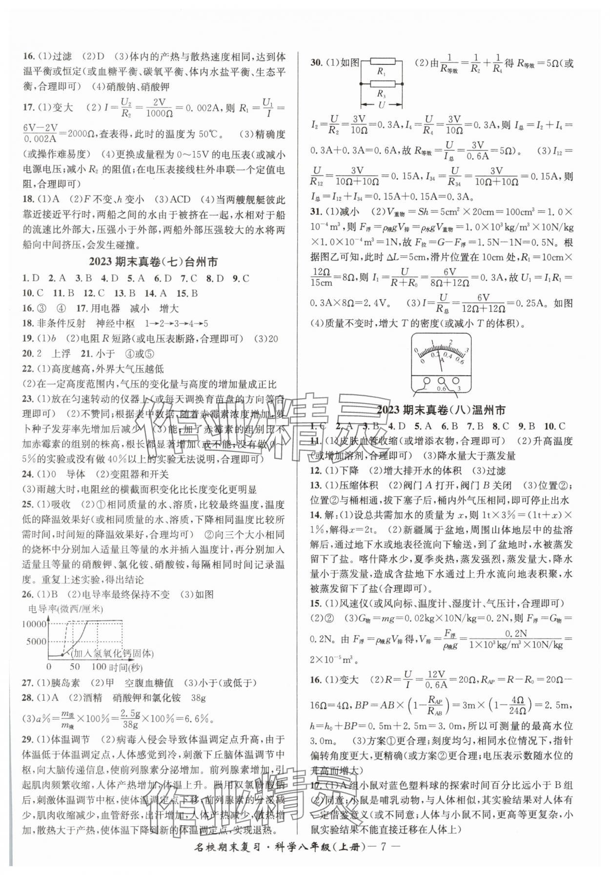 《2024年名校期末复习宝典八年级科学上册浙教版》