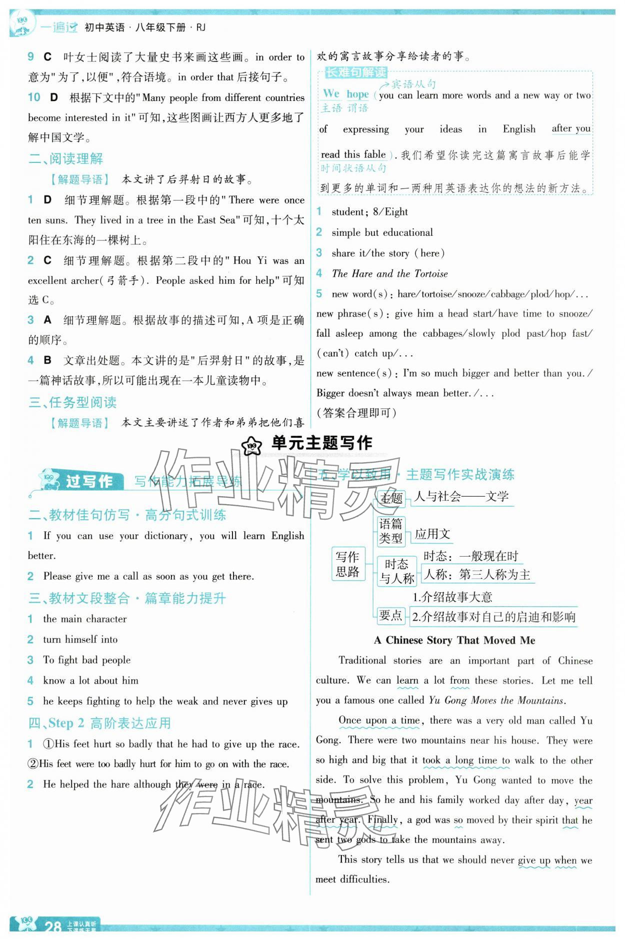 注:目前有些书本章节名称可能整理的还不是很完善,但都是按照顺序排列的,请同学们按照顺序仔细查找。练习册 2025年一遍过八年级英语下册人教版 答案主要是用来给同学们做完题方便对答案用的,请勿直接抄袭。