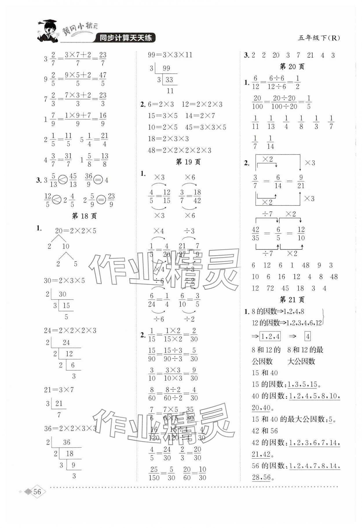 注:目前有些书本章节名称可能整理的还不是很完善,但都是按照顺序排列的,请同学们按照顺序仔细查找。练习册 2025年黄冈小状元同步计算天天练五年级数学下册人教版 答案主要是用来给同学们做完题方便对答案用的,请勿直接抄袭。