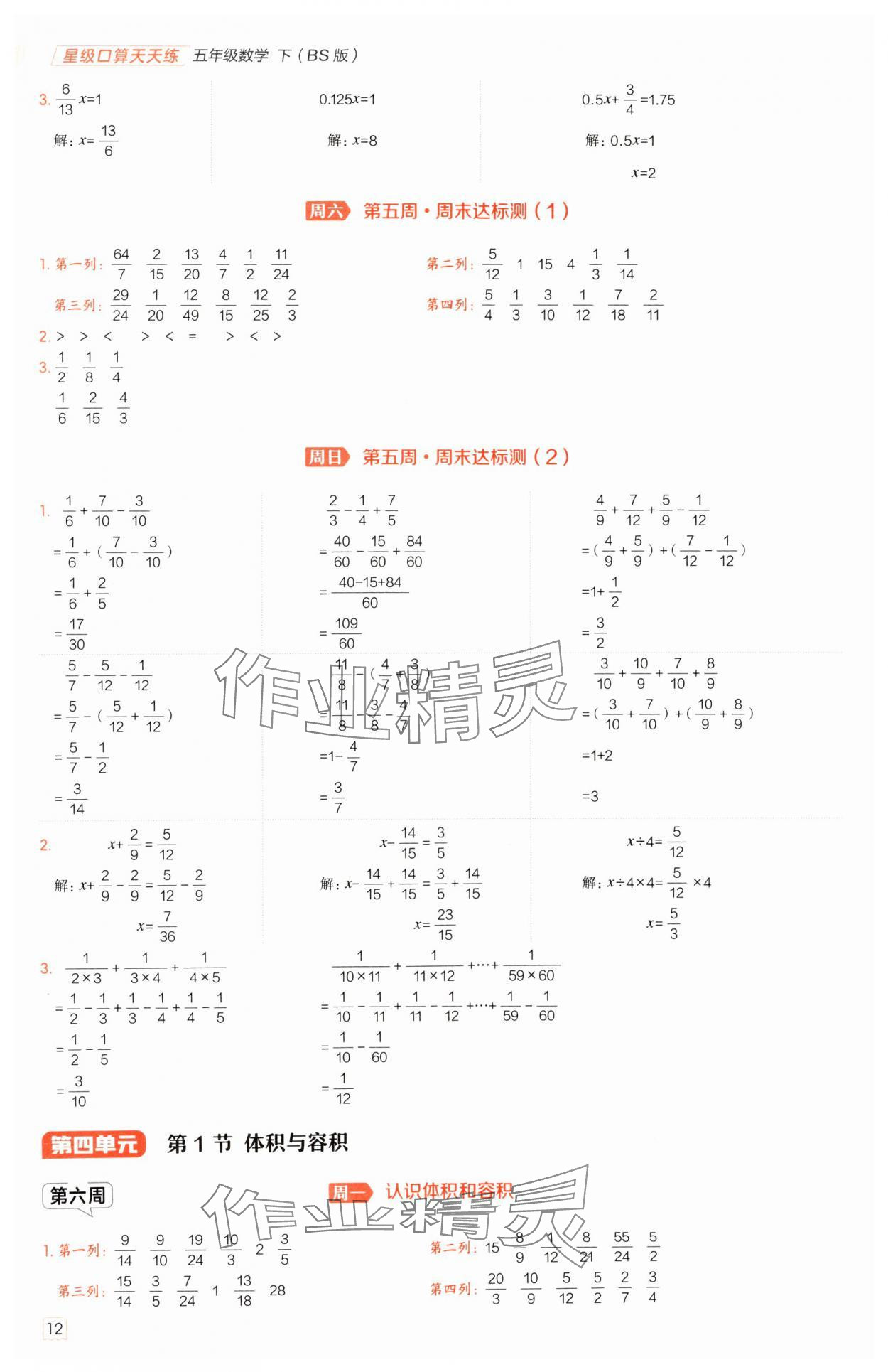 注:目前有些书本章节名称可能整理的还不是很完善,但都是按照顺序排列的,请同学们按照顺序仔细查找。练习册 2025年星级口算天天练五年级数学下册北师大版 答案主要是用来给同学们做完题方便对答案用的,请勿直接抄袭。