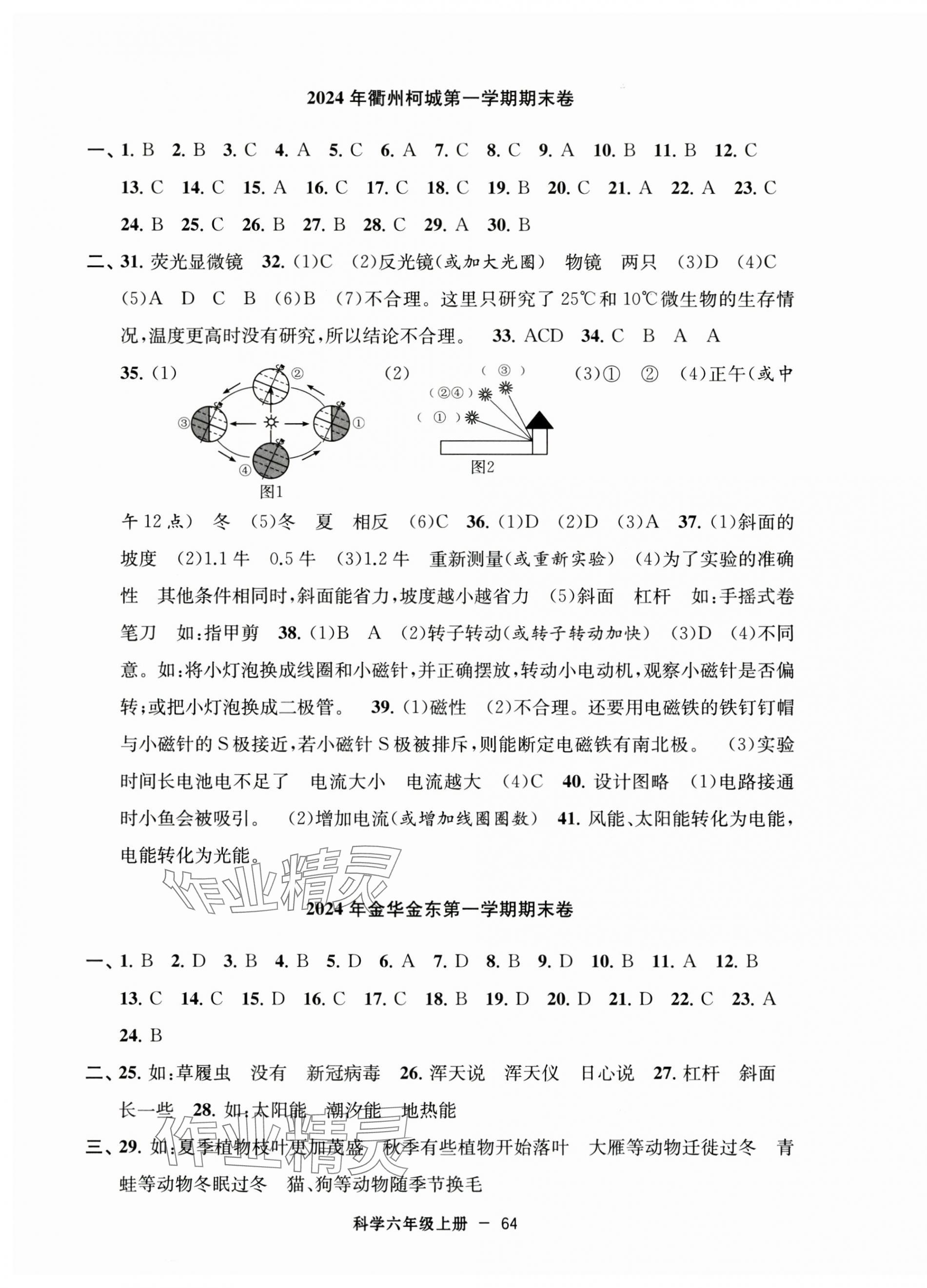 2024年浙江各地期末迎考卷六年级科学上册教科版