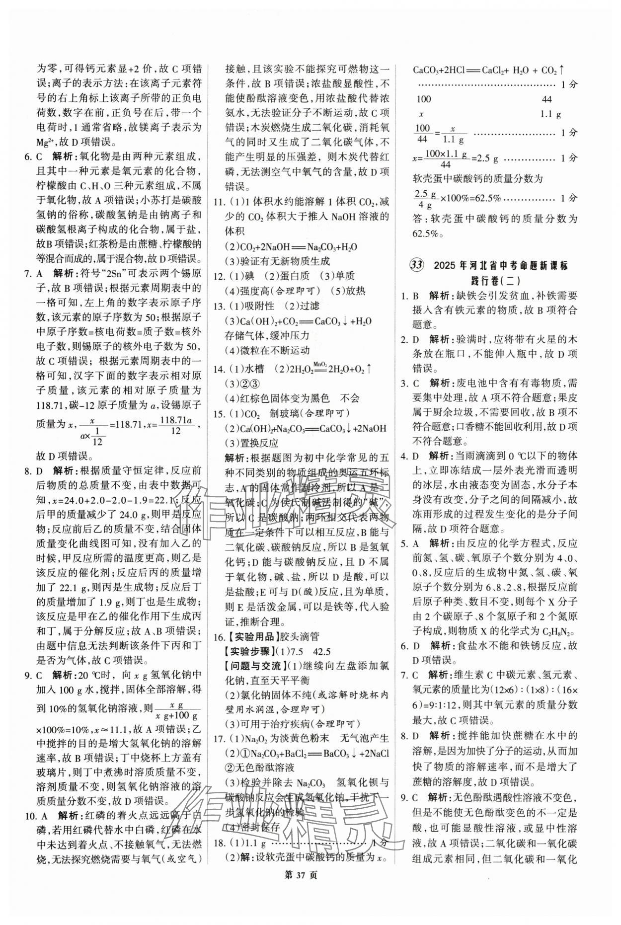 注:目前有些书本章节名称可能整理的还不是很完善,但都是按照顺序排列的,请同学们按照顺序仔细查找。练习册 2025年全优中考全国中考试题精选精析化学河北专用 答案主要是用来给同学们做完题方便对答案用的,请勿直接抄袭。