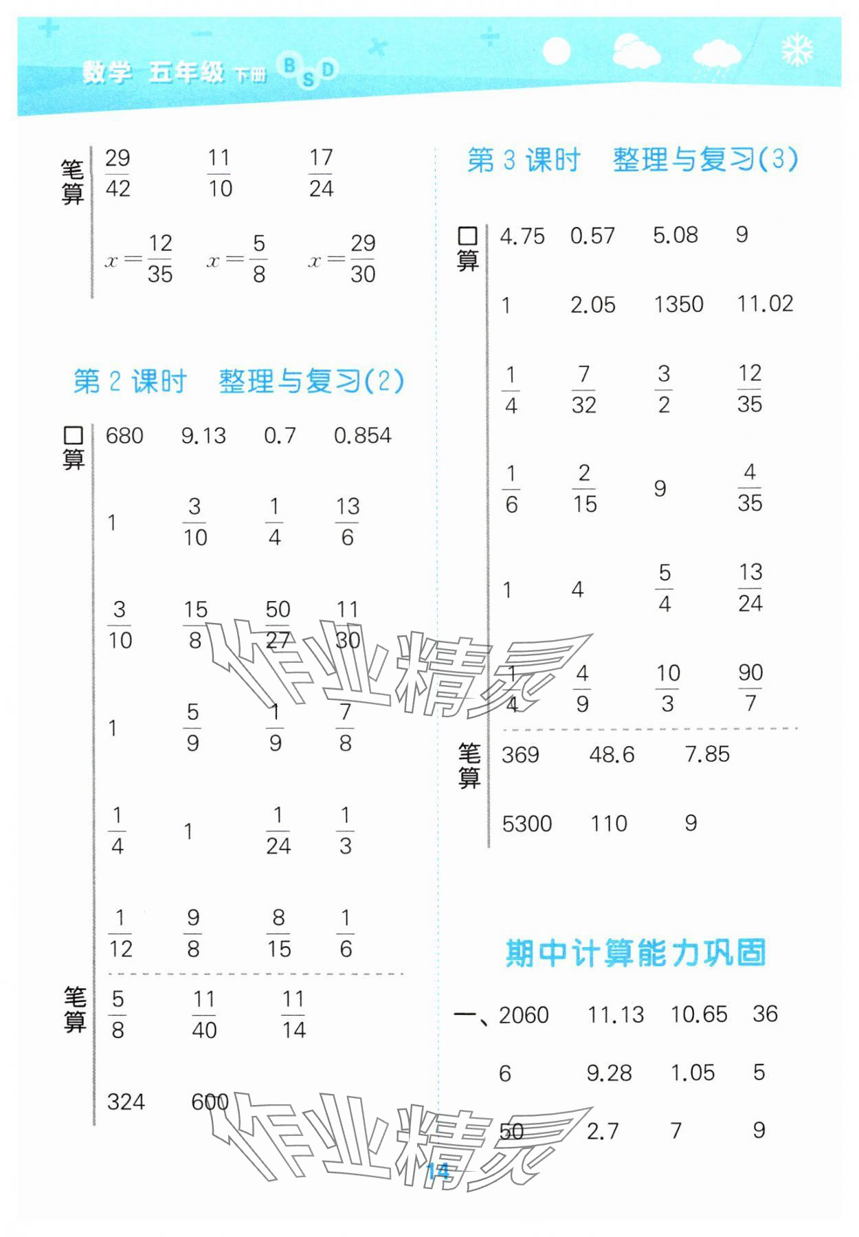 注:目前有些书本章节名称可能整理的还不是很完善,但都是按照顺序排列的,请同学们按照顺序仔细查找。练习册 2025年口算大通关五年级数学下册北师大版 答案主要是用来给同学们做完题方便对答案用的,请勿直接抄袭。