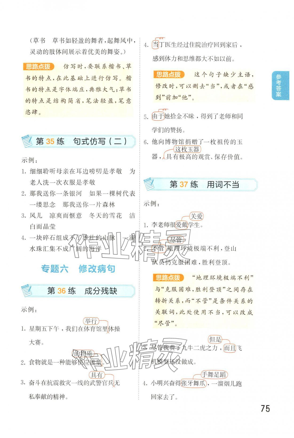 注:目前有些书本章节名称可能整理的还不是很完善,但都是按照顺序排列的,请同学们按照顺序仔细查找。练习册 2025年句式训练大全六年级语文下册人教版 答案主要是用来给同学们做完题方便对答案用的,请勿直接抄袭。