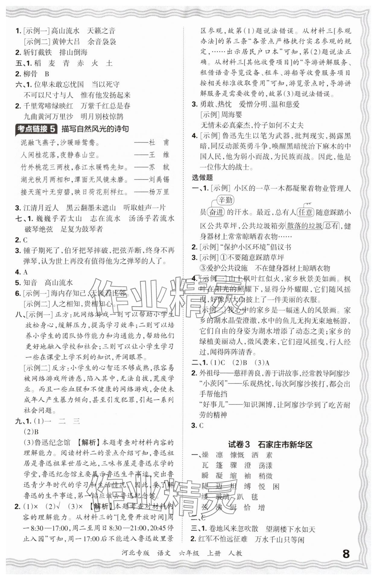 注:目前有些书本章节名称可能整理的还不是很完善,但都是按照顺序排列的,请同学们按照顺序仔细查找。练习册 2024年王朝霞各地期末试卷精选六年级语文上册人教版河北专版 答案主要是用来给同学们做完题方便对答案用的,请勿直接抄袭。