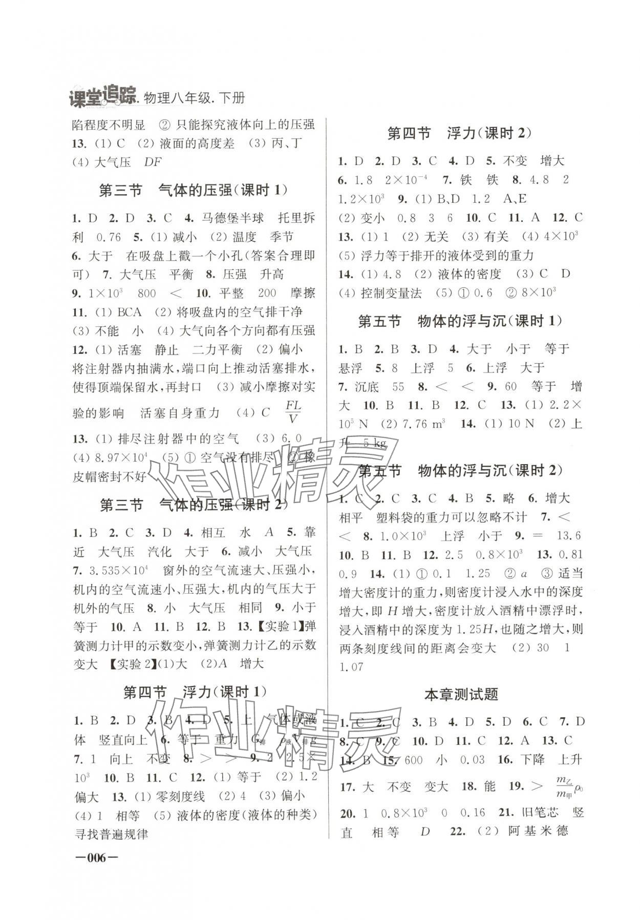 注:目前有些书本章节名称可能整理的还不是很完善,但都是按照顺序排列的,请同学们按照顺序仔细查找。练习册 2025年课堂追踪八年级物理下册苏科版 答案主要是用来给同学们做完题方便对答案用的,请勿直接抄袭。