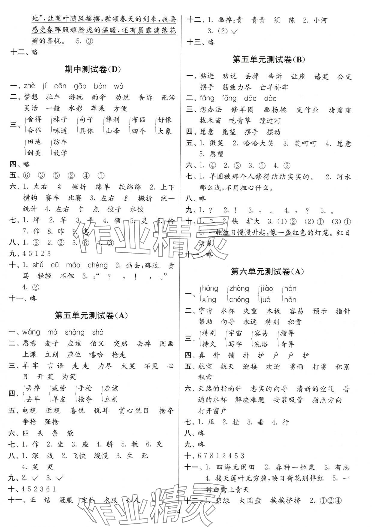 注:目前有些书本章节名称可能整理的还不是很完善,但都是按照顺序排列的,请同学们按照顺序仔细查找。练习册 2025年江苏密卷二年级语文下册人教版 答案主要是用来给同学们做完题方便对答案用的,请勿直接抄袭。