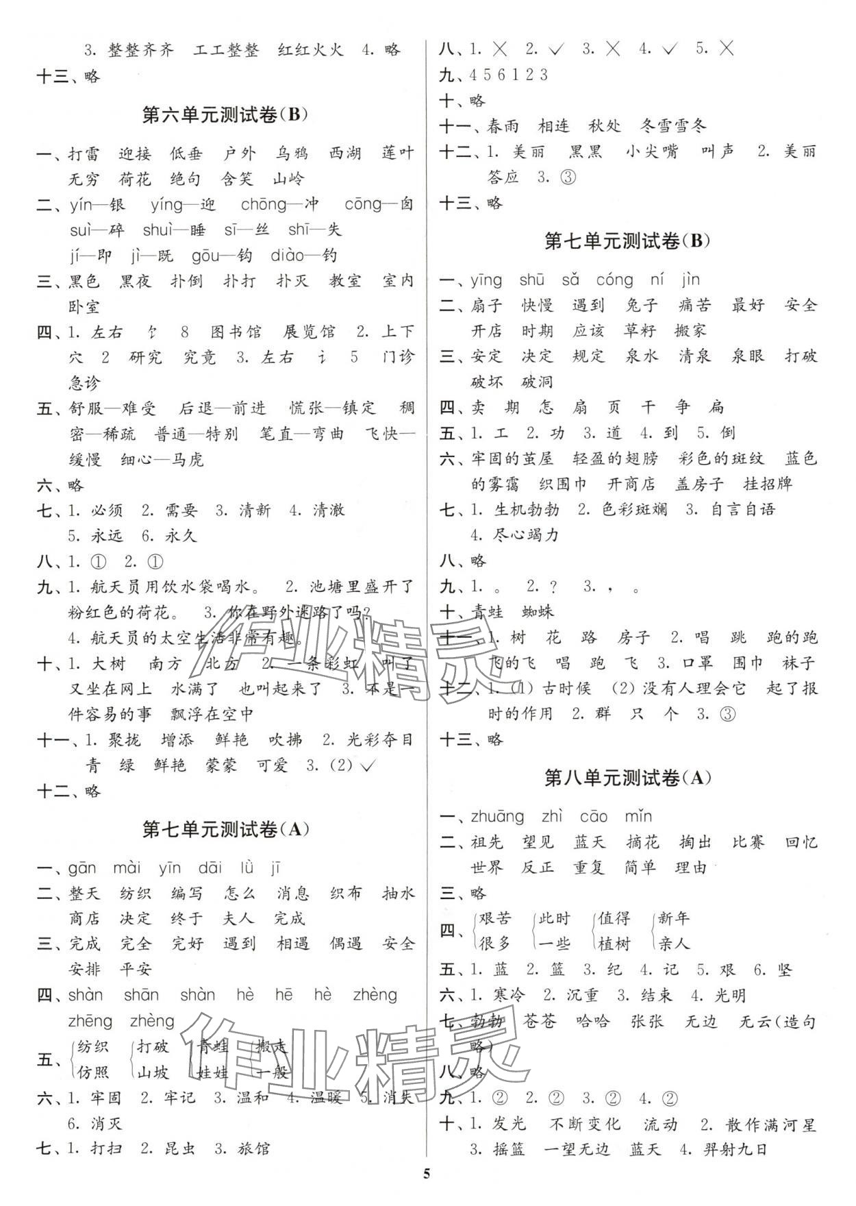 注:目前有些书本章节名称可能整理的还不是很完善,但都是按照顺序排列的,请同学们按照顺序仔细查找。练习册 2025年江苏密卷二年级语文下册人教版 答案主要是用来给同学们做完题方便对答案用的,请勿直接抄袭。