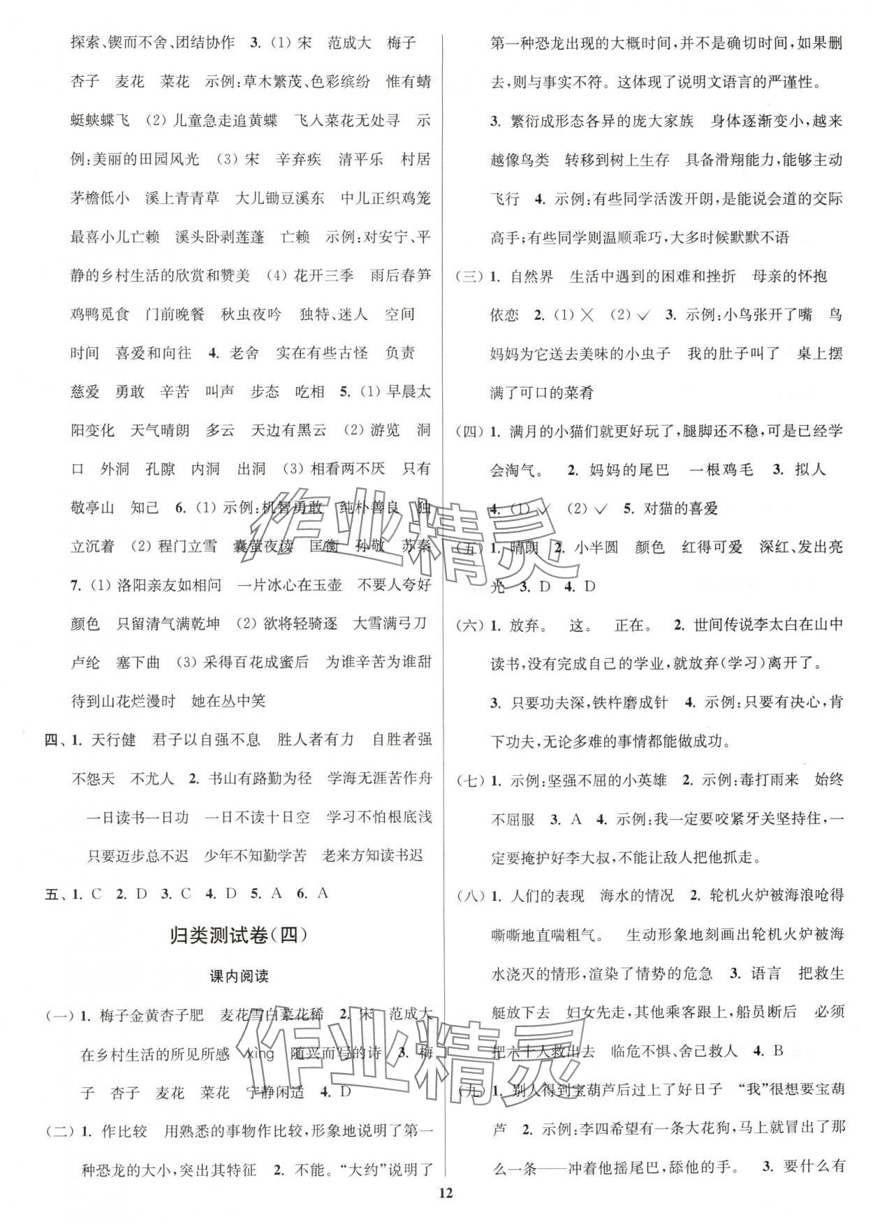 注:目前有些书本章节名称可能整理的还不是很完善,但都是按照顺序排列的,请同学们按照顺序仔细查找。练习册 2025年江苏密卷四年级语文下册人教版 答案主要是用来给同学们做完题方便对答案用的,请勿直接抄袭。