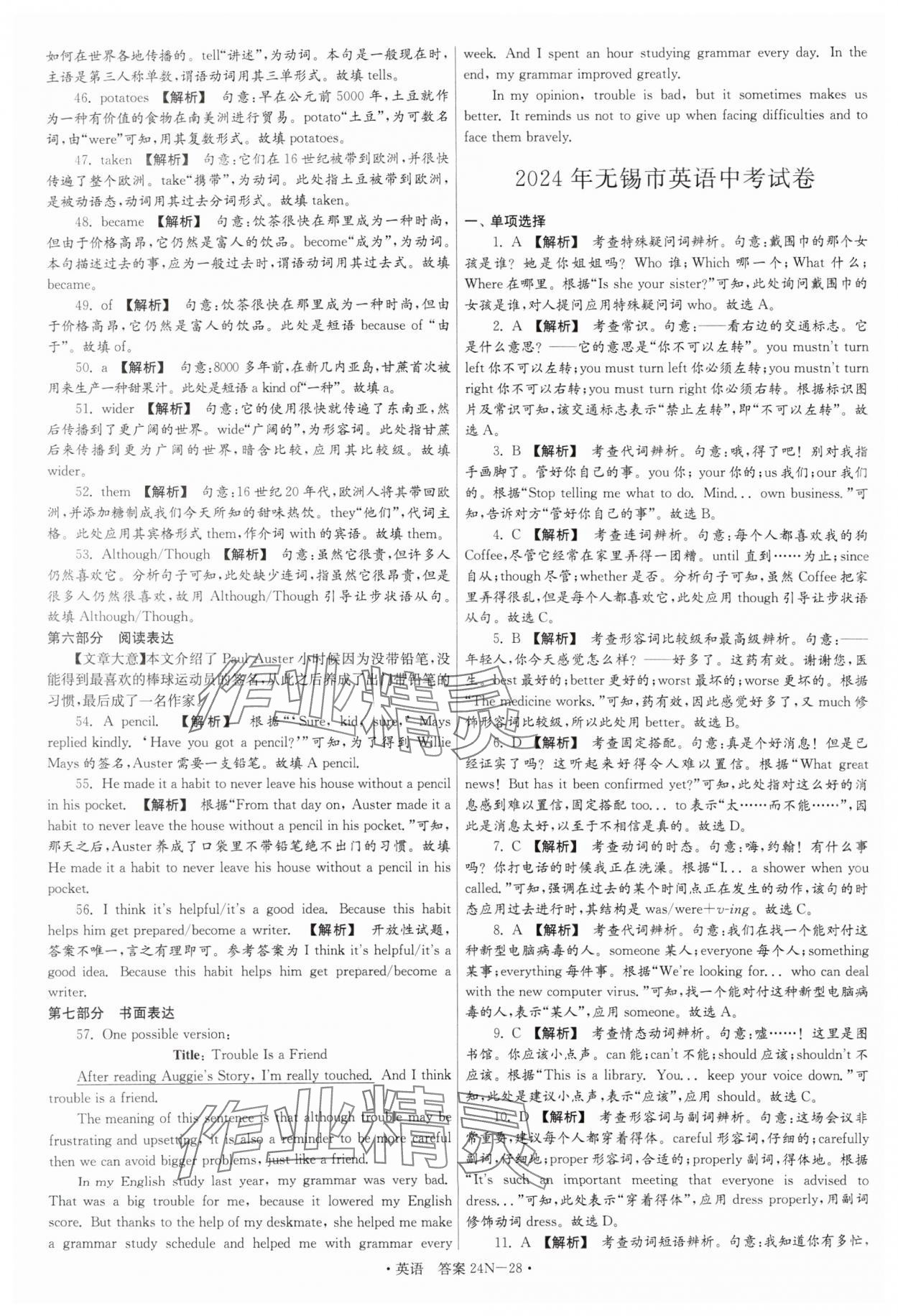 注:目前有些书本章节名称可能整理的还不是很完善,但都是按照顺序排列的,请同学们按照顺序仔细查找。练习册 2025年江苏省中考试卷汇编英语 答案主要是用来给同学们做完题方便对答案用的,请勿直接抄袭。