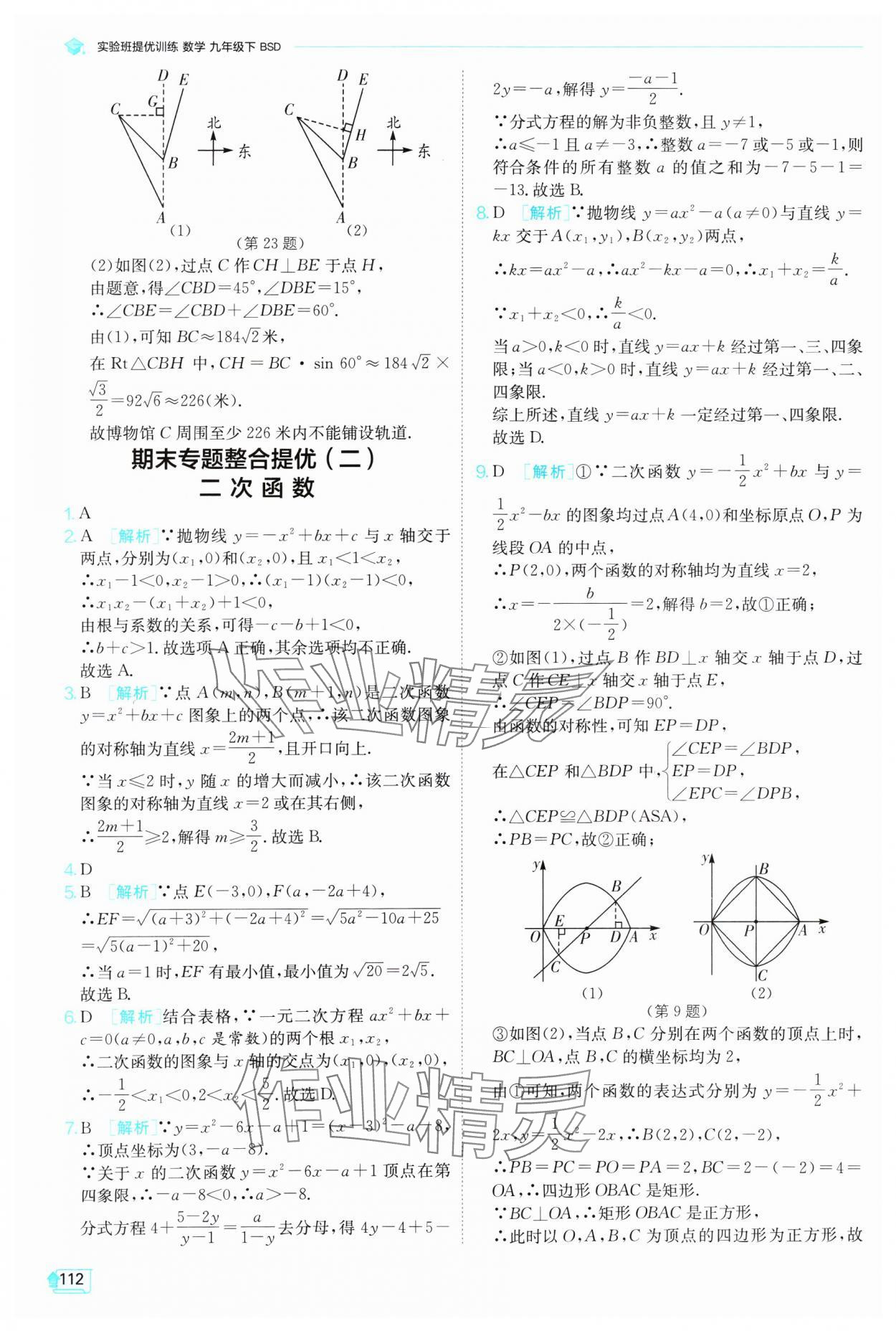 注:目前有些书本章节名称可能整理的还不是很完善,但都是按照顺序排列的,请同学们按照顺序仔细查找。练习册 2025年实验班提优训练九年级数学下册北师大版 答案主要是用来给同学们做完题方便对答案用的,请勿直接抄袭。