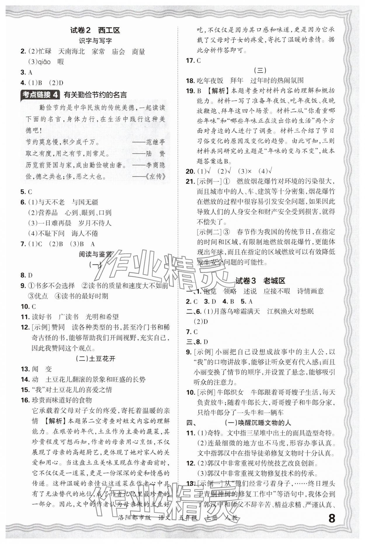 注:目前有些书本章节名称可能整理的还不是很完善,但都是按照顺序排列的,请同学们按照顺序仔细查找。练习册 2024年王朝霞各地期末试卷精选五年级语文上册人教版洛阳专版 答案主要是用来给同学们做完题方便对答案用的,请勿直接抄袭。