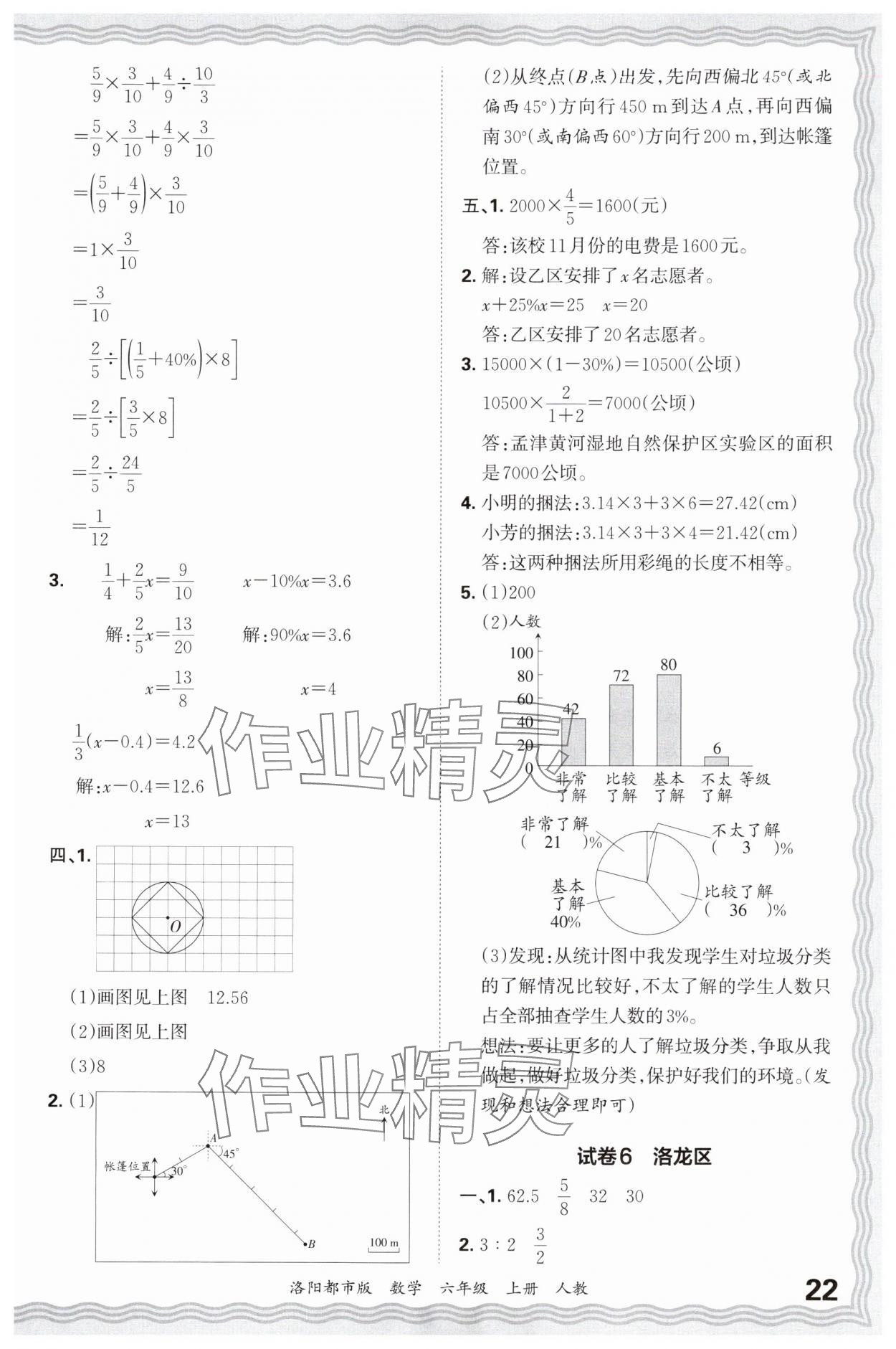 注:目前有些书本章节名称可能整理的还不是很完善,但都是按照顺序排列的,请同学们按照顺序仔细查找。练习册 2024年王朝霞各地期末试卷精选六年级数学上册人教版洛阳专版 答案主要是用来给同学们做完题方便对答案用的,请勿直接抄袭。