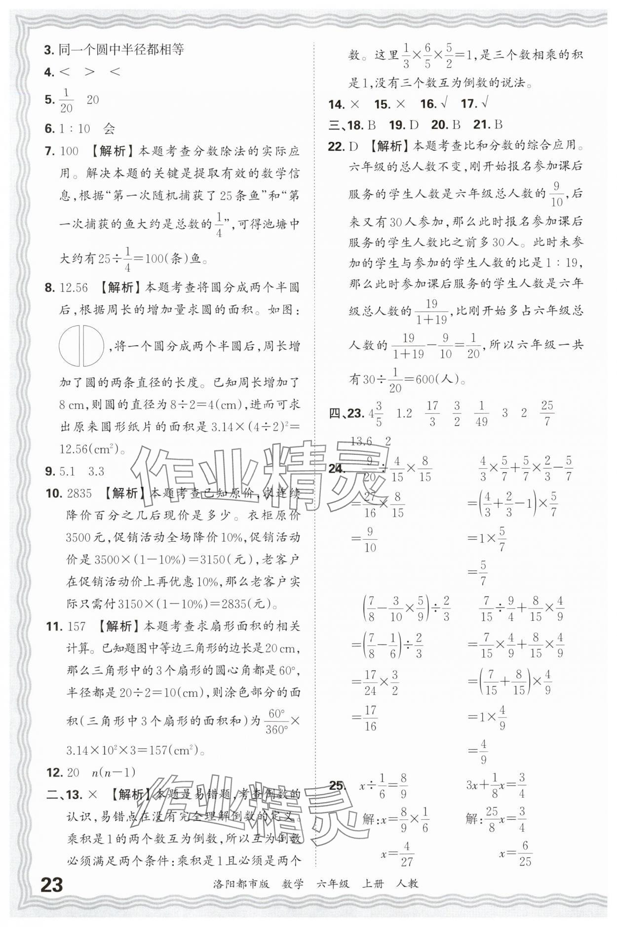 注:目前有些书本章节名称可能整理的还不是很完善,但都是按照顺序排列的,请同学们按照顺序仔细查找。练习册 2024年王朝霞各地期末试卷精选六年级数学上册人教版洛阳专版 答案主要是用来给同学们做完题方便对答案用的,请勿直接抄袭。