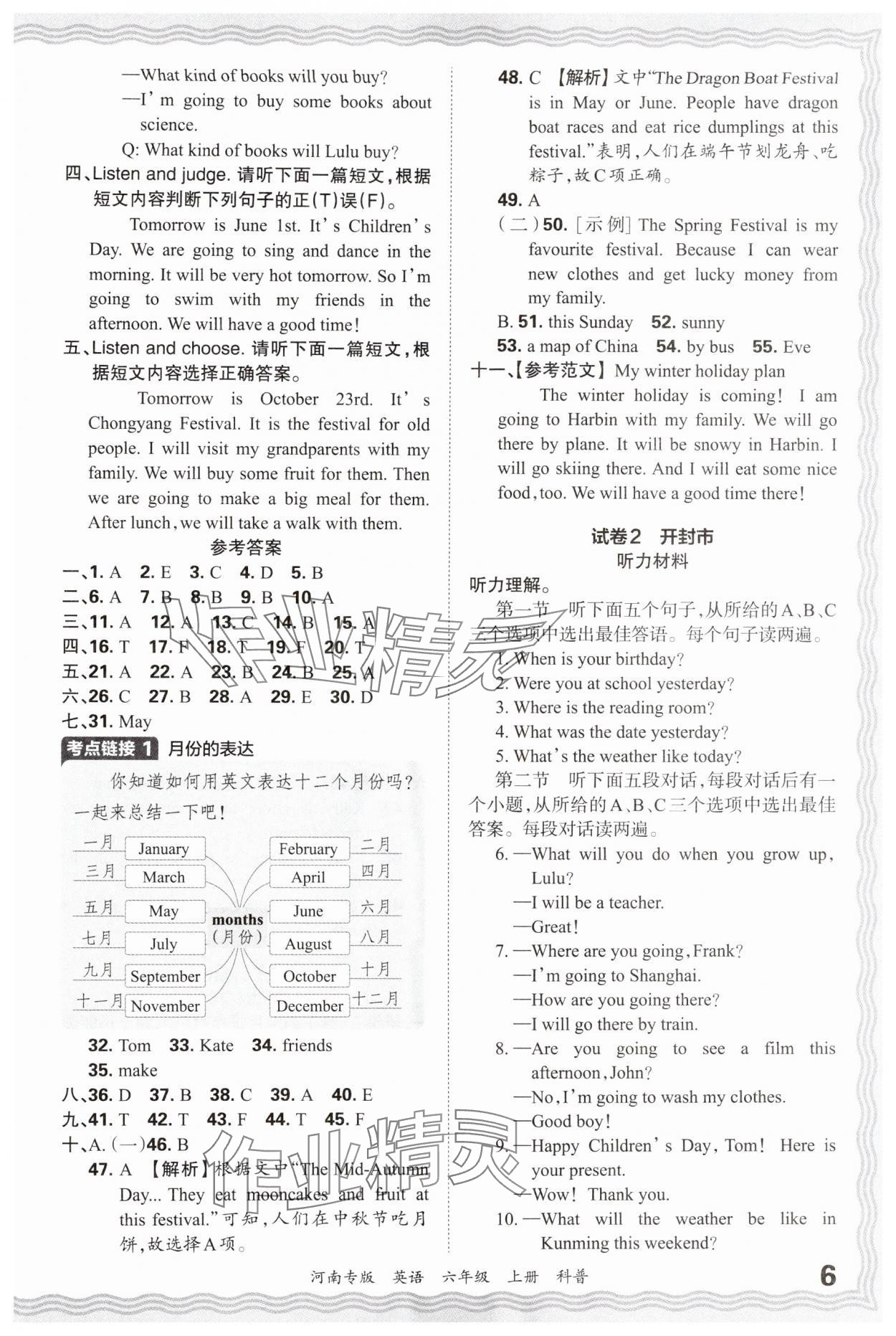 注:目前有些书本章节名称可能整理的还不是很完善,但都是按照顺序排列的,请同学们按照顺序仔细查找。练习册 2024年王朝霞各地期末试卷精选六年级英语上册科普版 答案主要是用来给同学们做完题方便对答案用的,请勿直接抄袭。