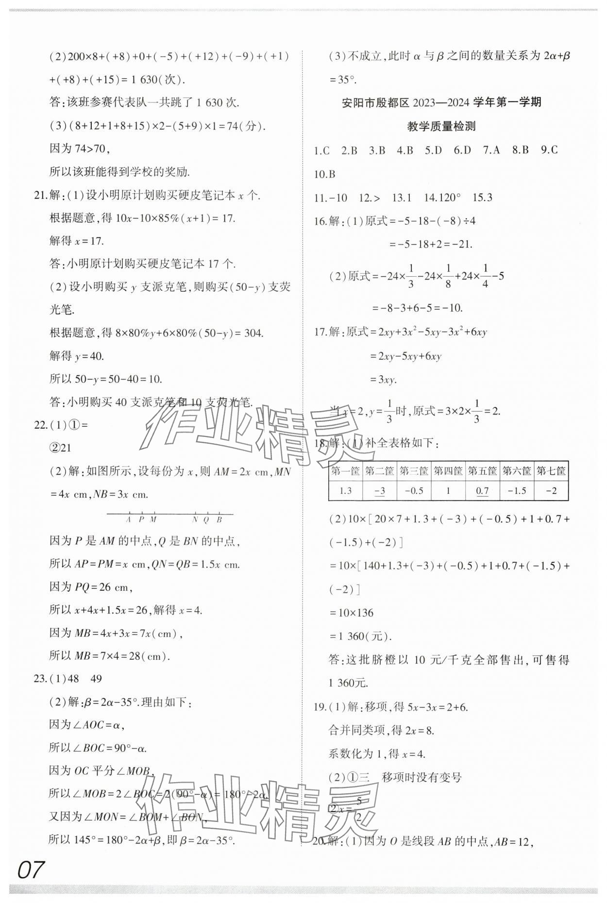《2024年全程无忧真题期末七年级数学上册人教版河南专版》