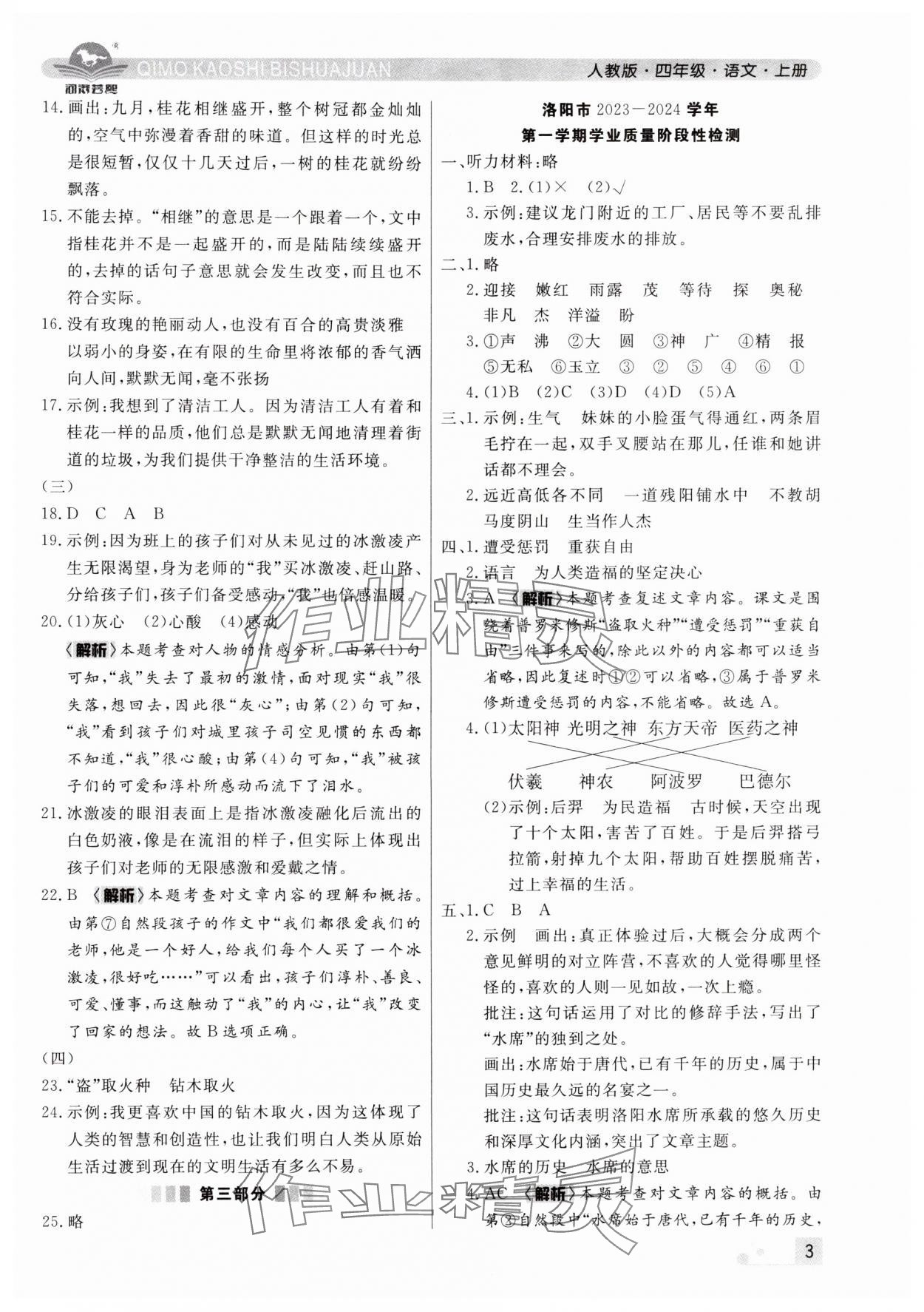 注:目前有些书本章节名称可能整理的还不是很完善,但都是按照顺序排列的,请同学们按照顺序仔细查找。练习册 2024年期末考试必刷卷四年级语文上册人教版河南专版 答案主要是用来给同学们做完题方便对答案用的,请勿直接抄袭。
