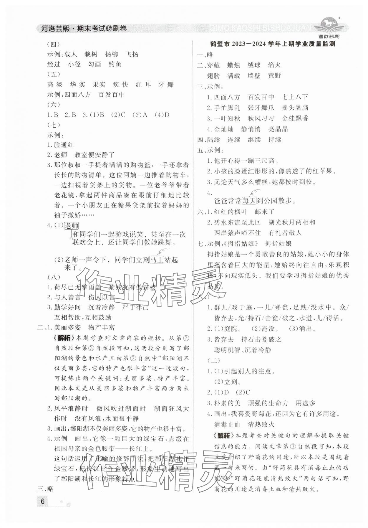 注:目前有些书本章节名称可能整理的还不是很完善,但都是按照顺序排列的,请同学们按照顺序仔细查找。练习册 2024年期末考试必刷卷三年级语文上册人教版河南专版 答案主要是用来给同学们做完题方便对答案用的,请勿直接抄袭。