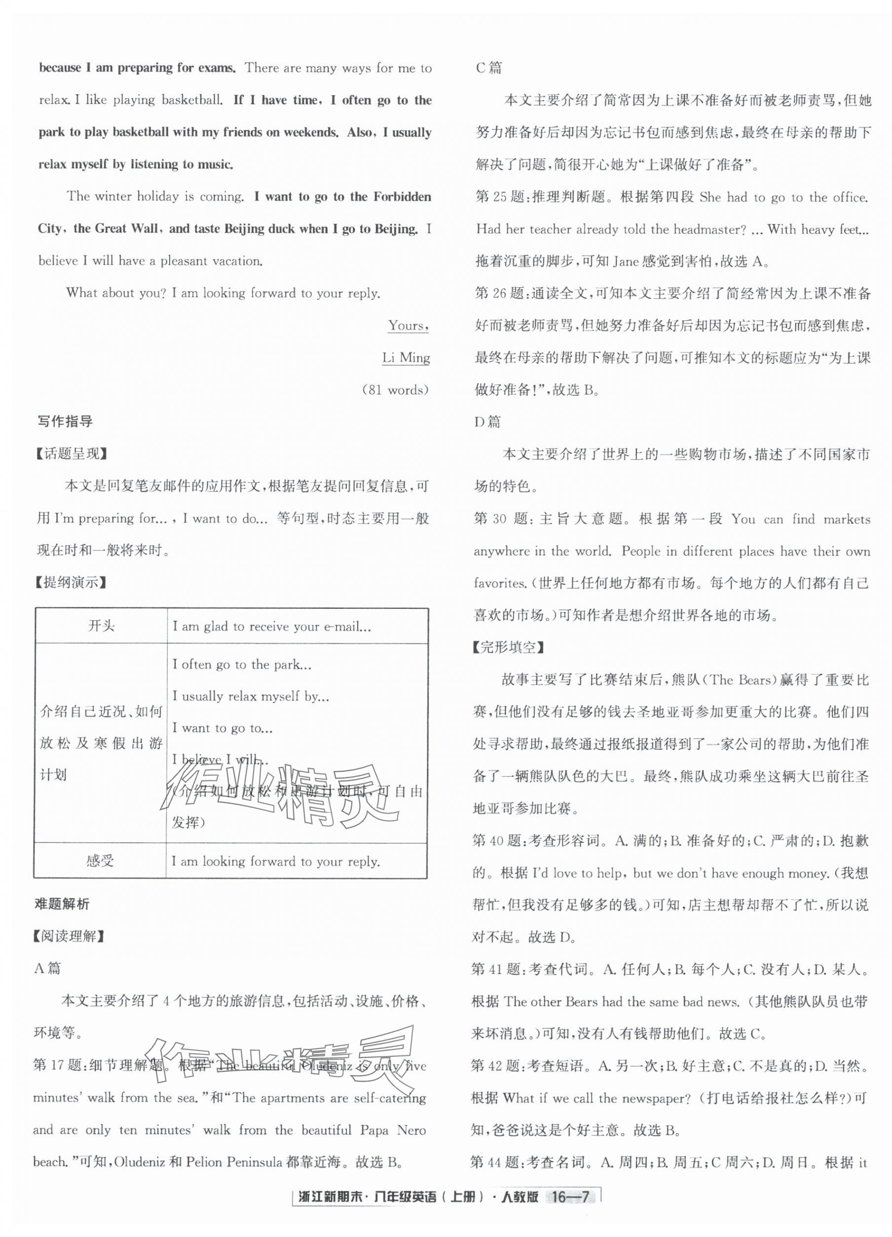 注:目前有些书本章节名称可能整理的还不是很完善,但都是按照顺序排列的,请同学们按照顺序仔细查找。练习册 2024年浙江新期末八年级英语上册人教版 答案主要是用来给同学们做完题方便对答案用的,请勿直接抄袭。