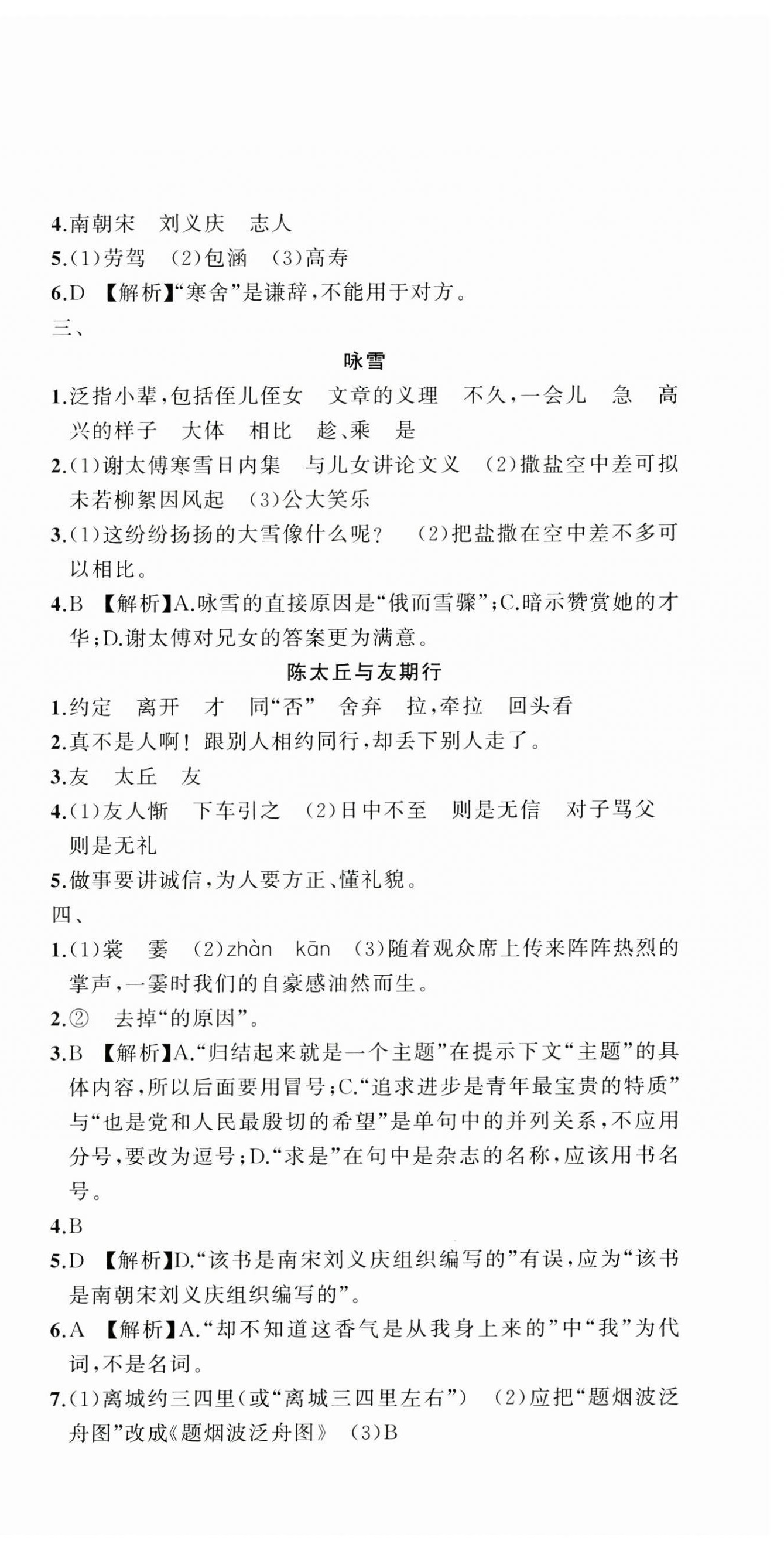 注:目前有些书本章节名称可能整理的还不是很完善,但都是按照顺序排列的,请同学们按照顺序仔细查找。练习册 2024年名师面对面期末大通关七年级语文上册人教版浙江专版 答案主要是用来给同学们做完题方便对答案用的,请勿直接抄袭。