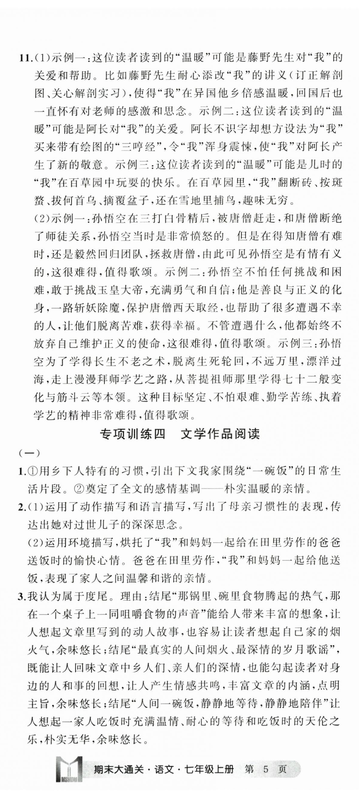 2024年名师面对面期末大通关七年级语文上册人教版浙江专版