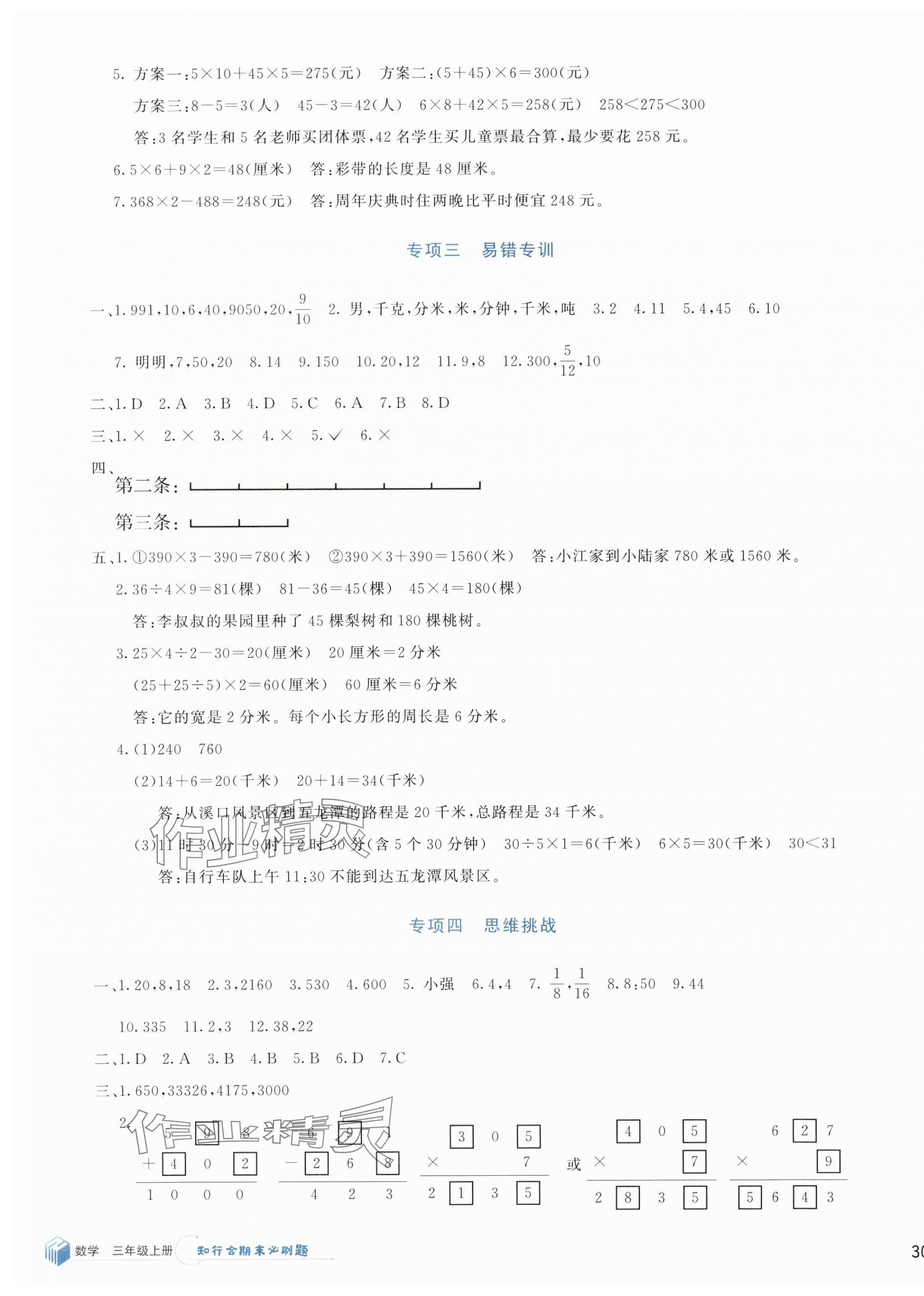注:目前有些书本章节名称可能整理的还不是很完善,但都是按照顺序排列的,请同学们按照顺序仔细查找。练习册 2024年知行合期末必刷题三年级数学上册人教版 答案主要是用来给同学们做完题方便对答案用的,请勿直接抄袭。