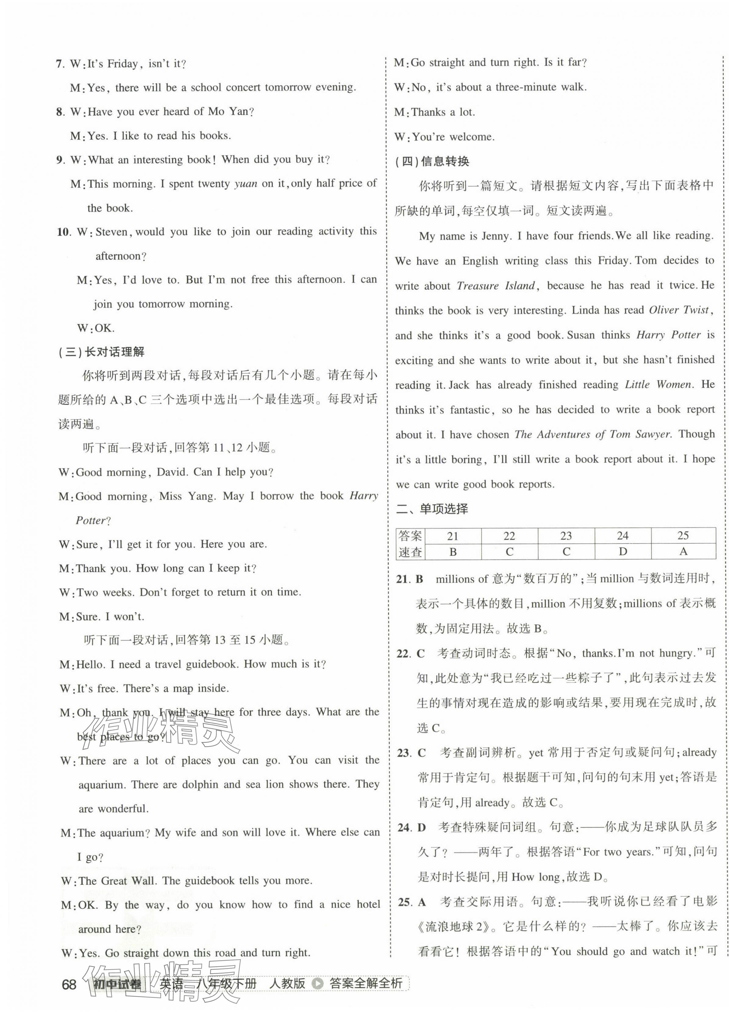 注:目前有些书本章节名称可能整理的还不是很完善,但都是按照顺序排列的,请同学们按照顺序仔细查找。练习册 2025年5年中考3年模拟初中试卷八年级英语下册人教版 答案主要是用来给同学们做完题方便对答案用的,请勿直接抄袭。
