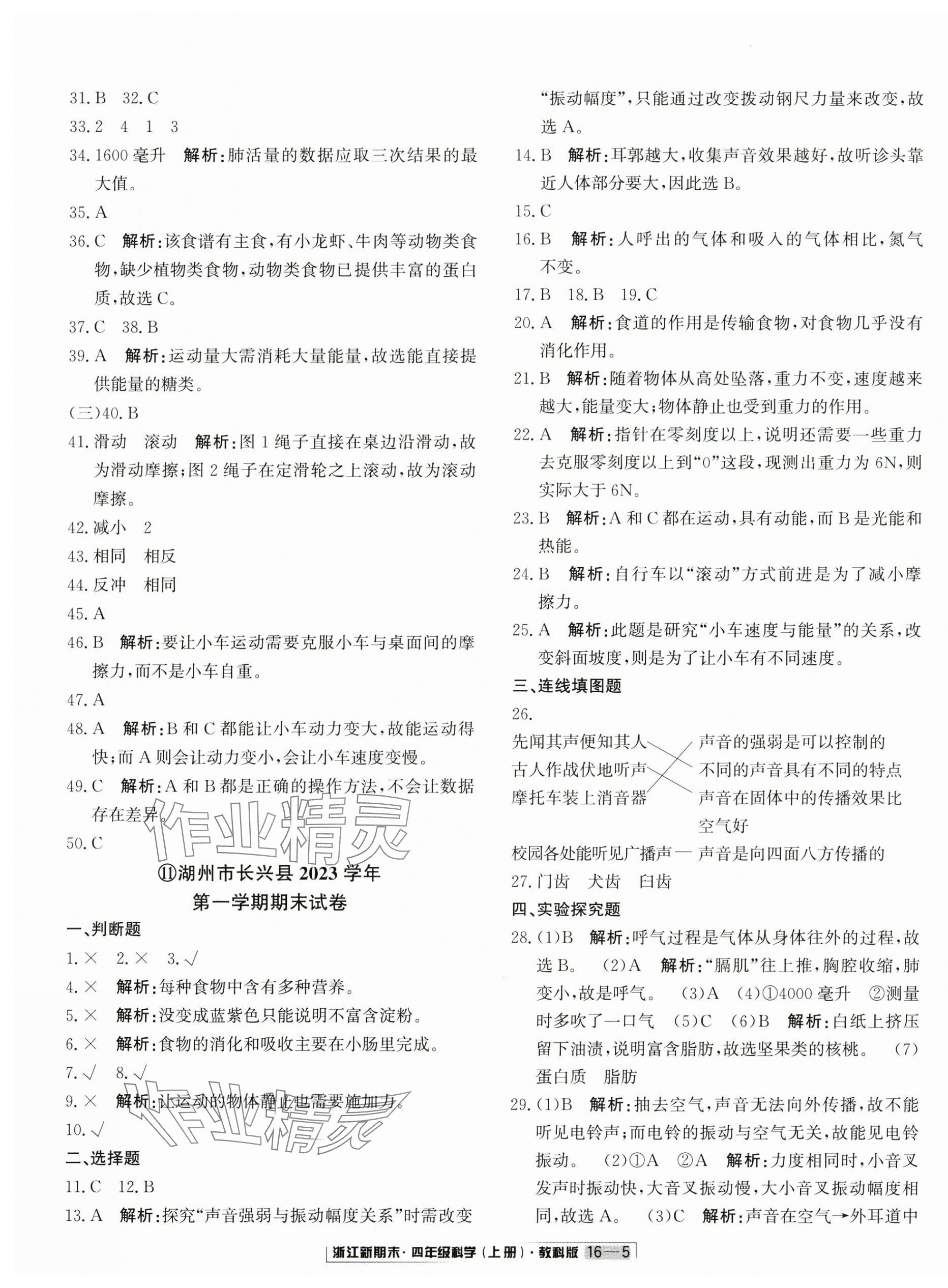 注:目前有些书本章节名称可能整理的还不是很完善,但都是按照顺序排列的,请同学们按照顺序仔细查找。练习册 2024年浙江新期末四年级科学上册教科版 答案主要是用来给同学们做完题方便对答案用的,请勿直接抄袭。