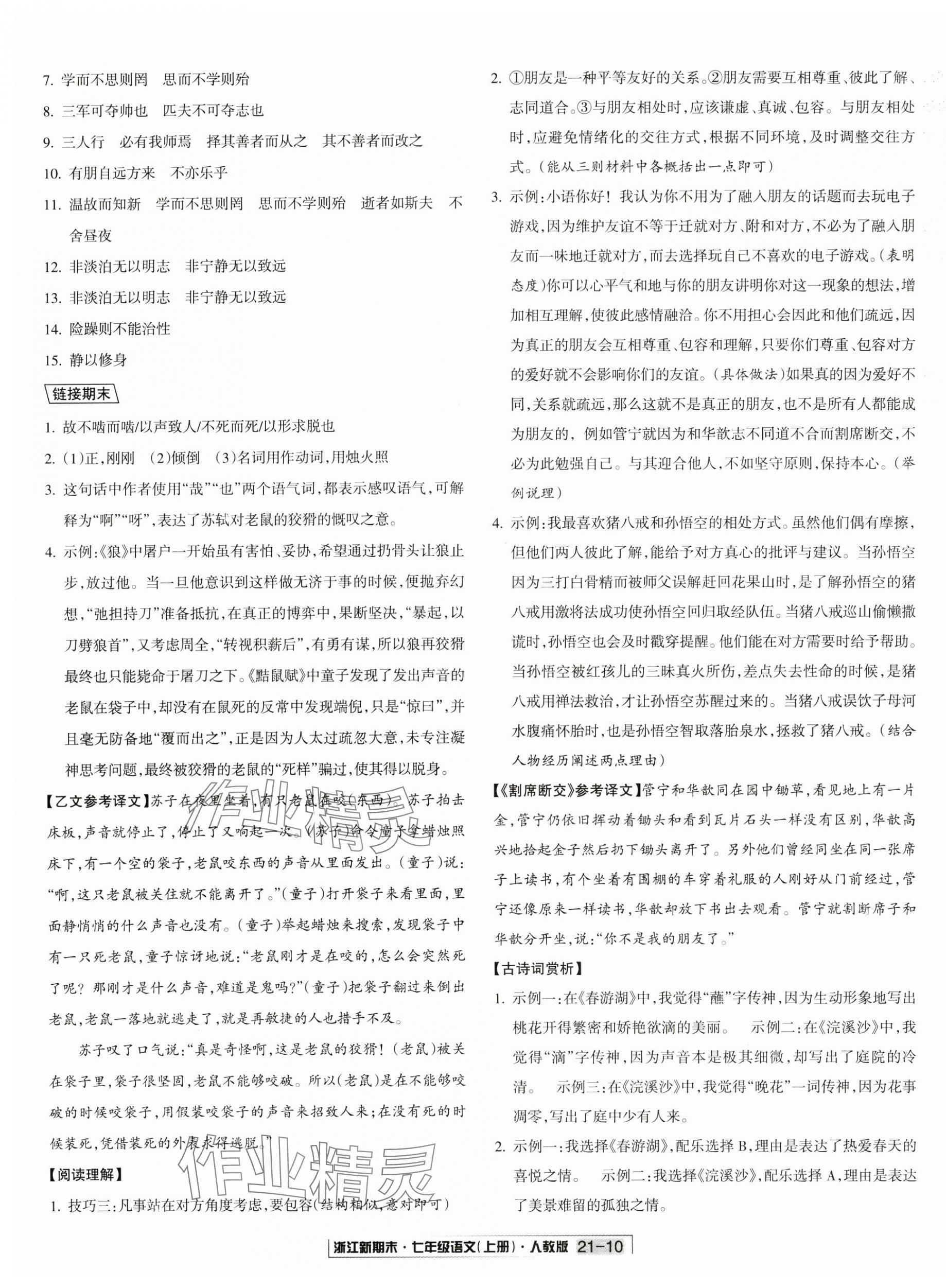 注:目前有些书本章节名称可能整理的还不是很完善,但都是按照顺序排列的,请同学们按照顺序仔细查找。练习册 2024年浙江新期末七年级语文上册人教版 答案主要是用来给同学们做完题方便对答案用的,请勿直接抄袭。