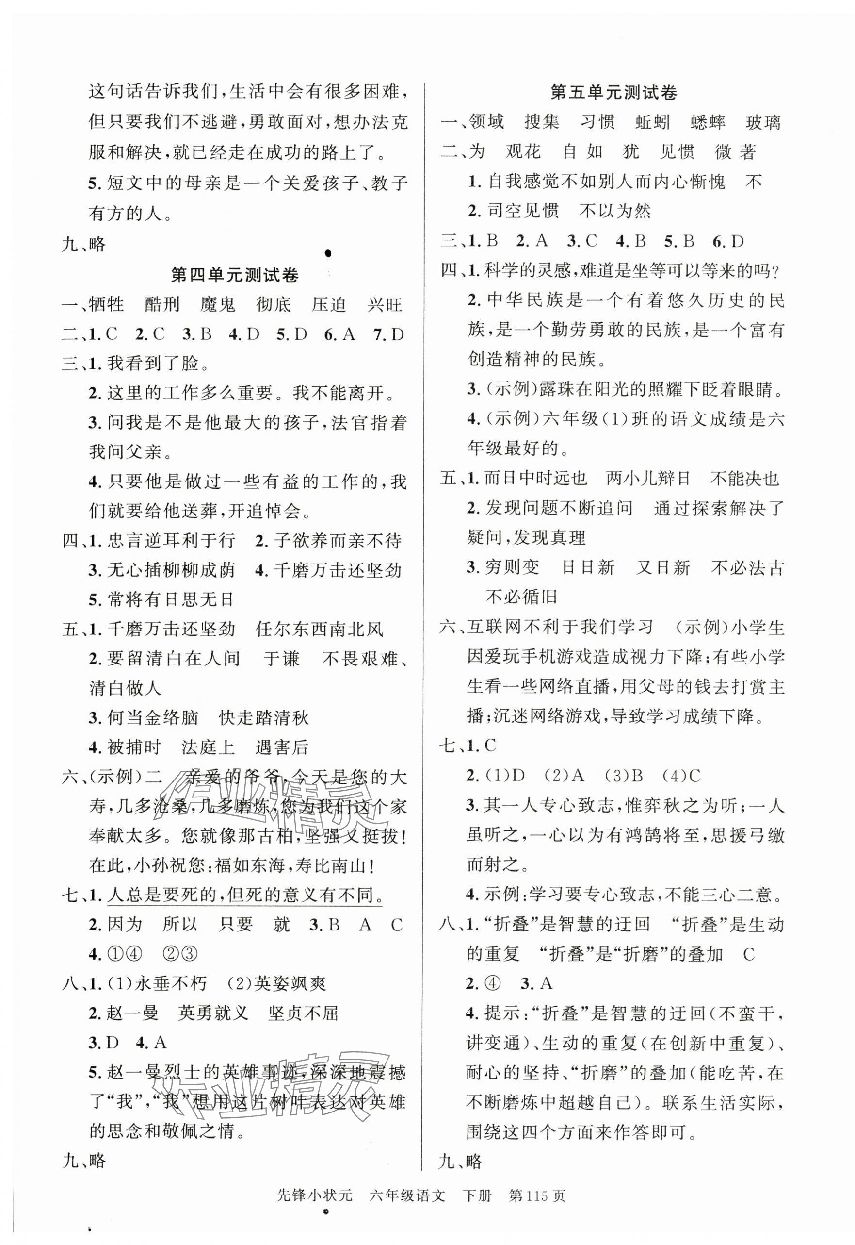 注:目前有些书本章节名称可能整理的还不是很完善,但都是按照顺序排列的,请同学们按照顺序仔细查找。练习册 2025年先锋小状元六年级语文下册人教版 答案主要是用来给同学们做完题方便对答案用的,请勿直接抄袭。