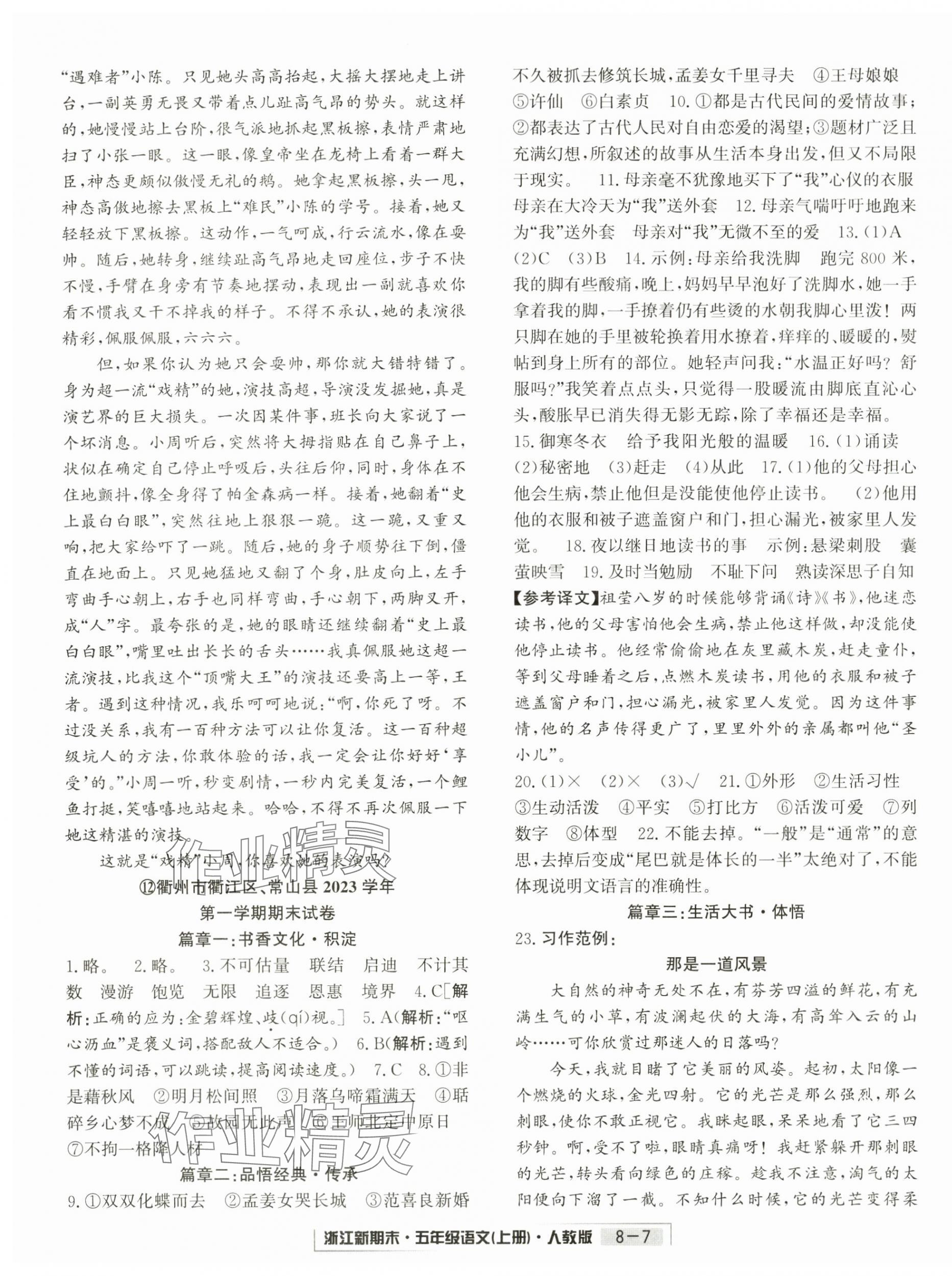 2024年励耘书业浙江新期末五年级语文上册人教版