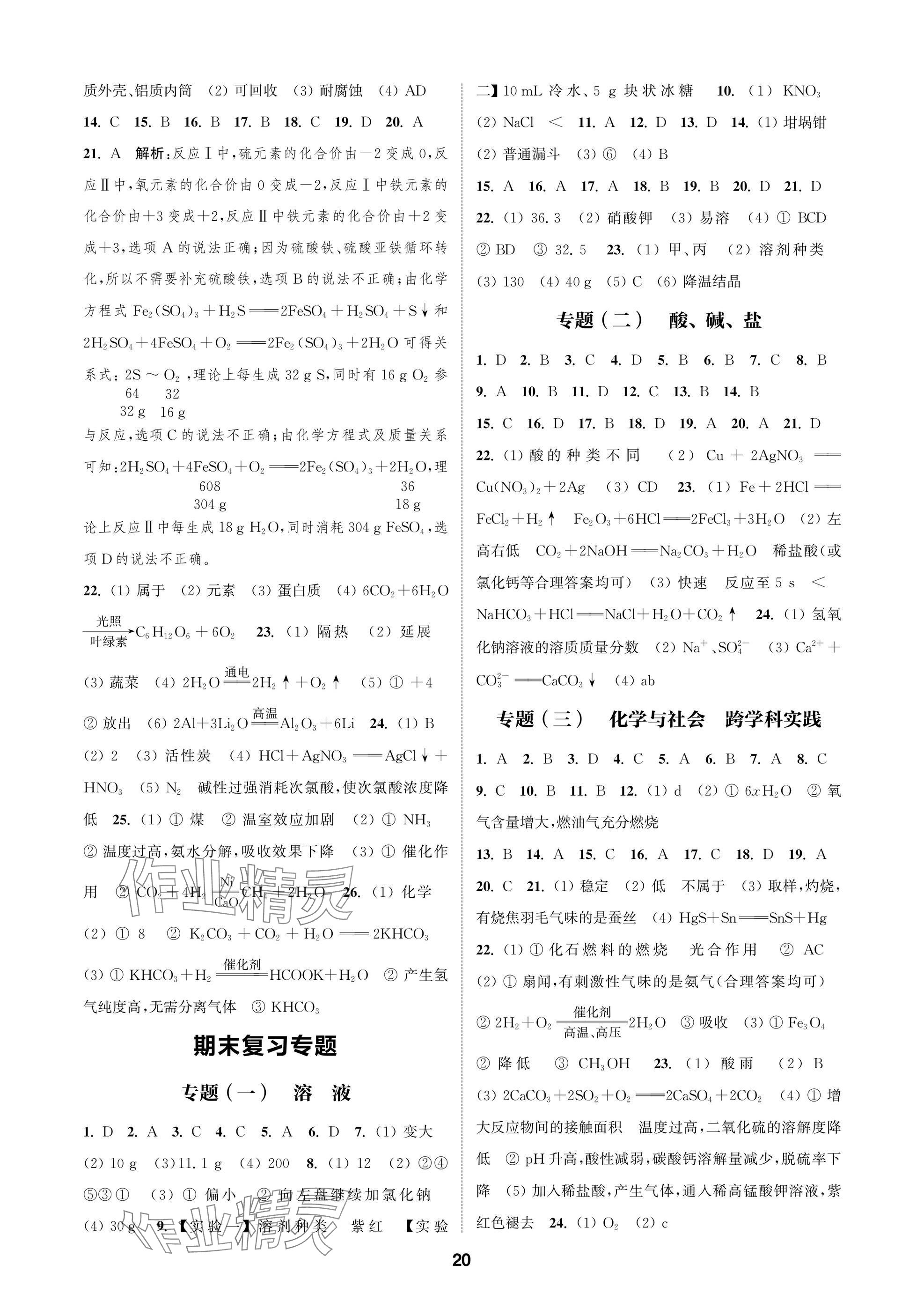 注:目前有些书本章节名称可能整理的还不是很完善,但都是按照顺序排列的,请同学们按照顺序仔细查找。练习册 2025年通成学典课时作业本九年级化学下册沪教版苏州专版 答案主要是用来给同学们做完题方便对答案用的,请勿直接抄袭。