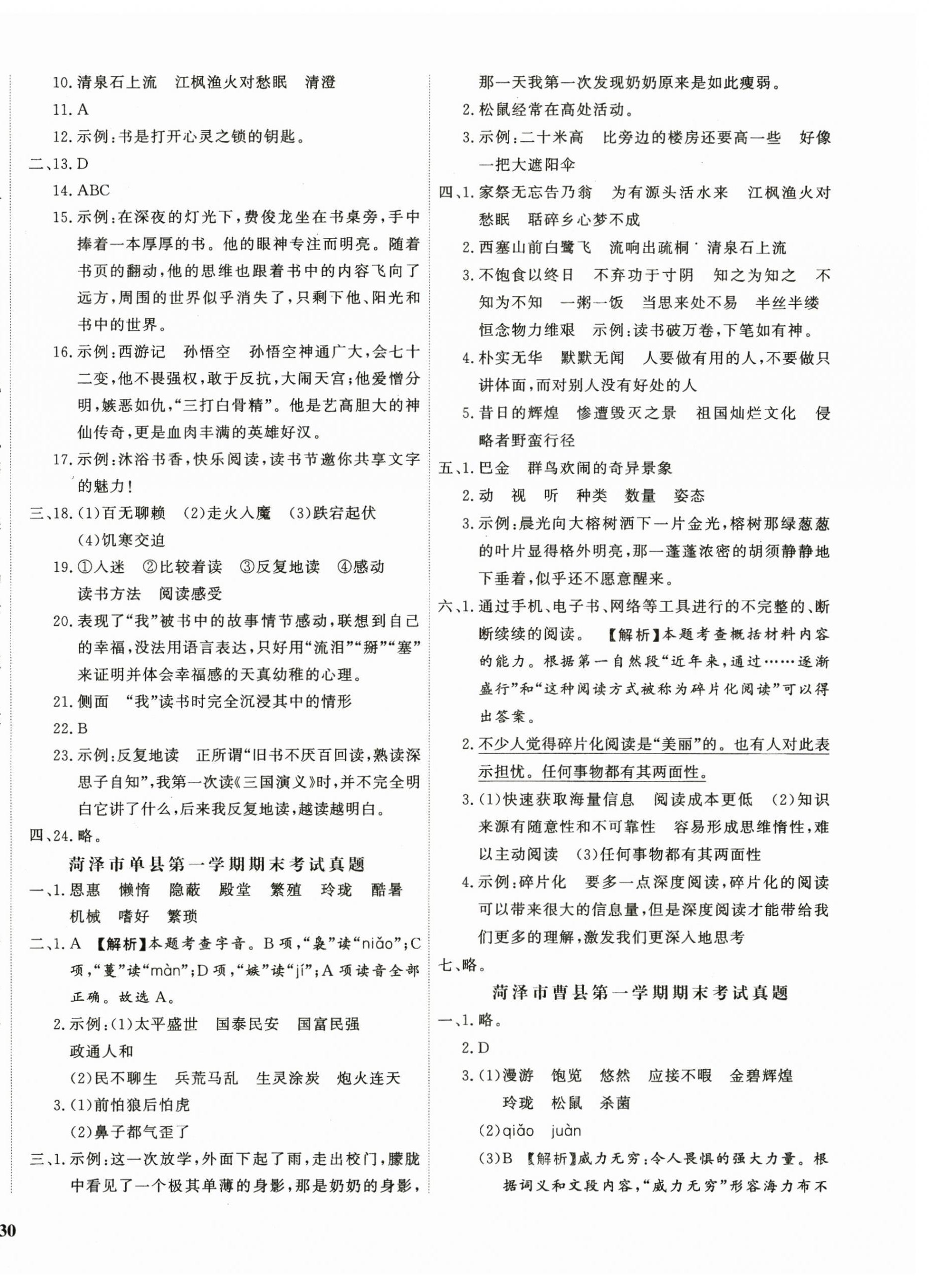 2024年菏泽真题汇编真题试卷五年级语文上册人教版