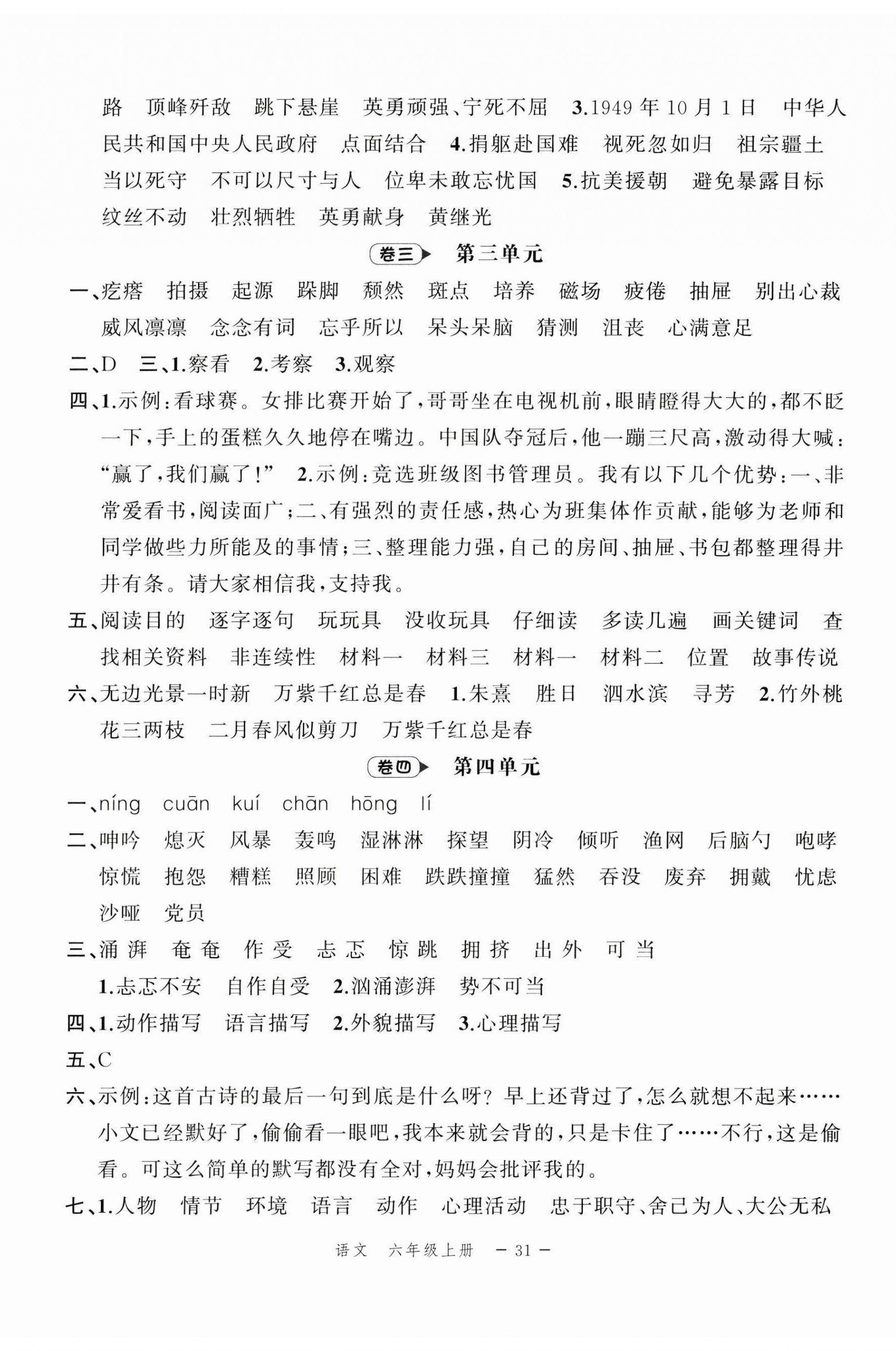 注:目前有些书本章节名称可能整理的还不是很完善,但都是按照顺序排列的,请同学们按照顺序仔细查找。练习册 2024年名师面对面期末大通关六年级语文上册人教版 答案主要是用来给同学们做完题方便对答案用的,请勿直接抄袭。