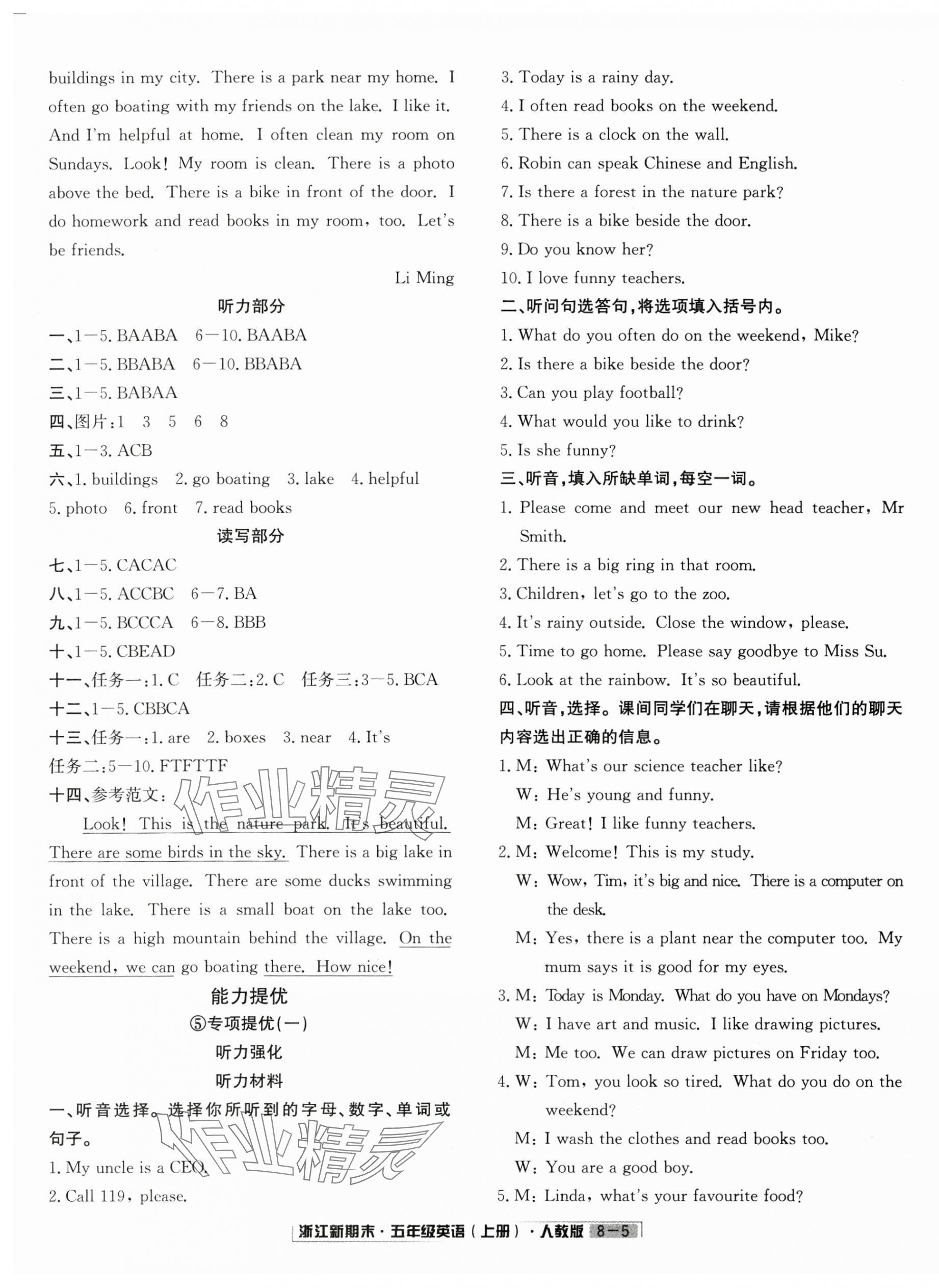 注:目前有些书本章节名称可能整理的还不是很完善,但都是按照顺序排列的,请同学们按照顺序仔细查找。练习册 2024年浙江新期末五年级英语上册人教版 答案主要是用来给同学们做完题方便对答案用的,请勿直接抄袭。