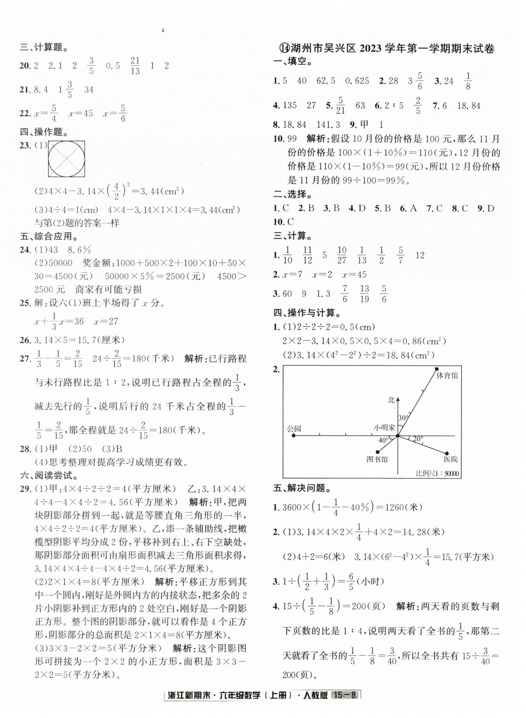注:目前有些书本章节名称可能整理的还不是很完善,但都是按照顺序排列的,请同学们按照顺序仔细查找。练习册 2024年浙江新期末六年级数学上册人教版 答案主要是用来给同学们做完题方便对答案用的,请勿直接抄袭。