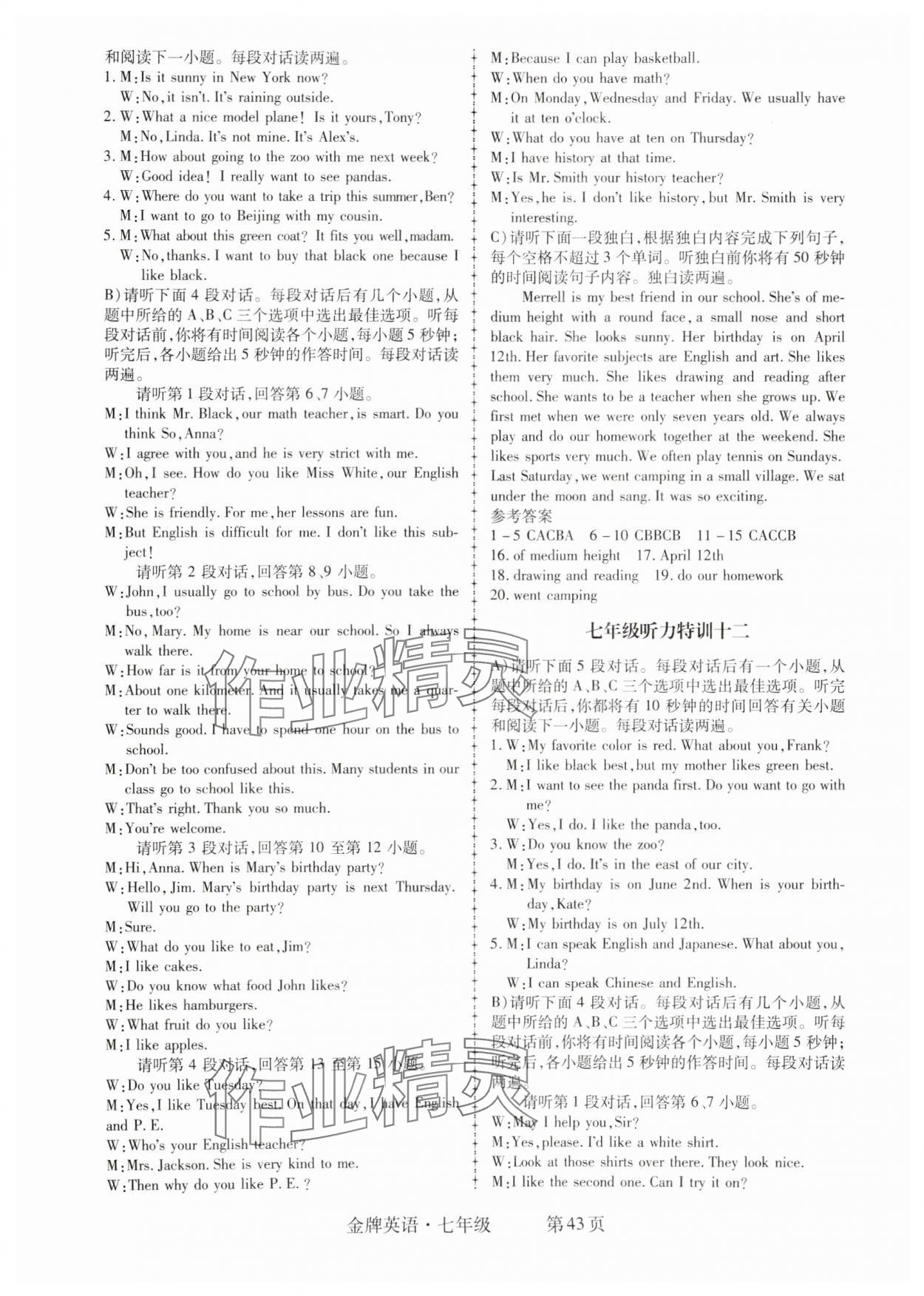 注:目前有些书本章节名称可能整理的还不是很完善,但都是按照顺序排列的,请同学们按照顺序仔细查找。练习册 2025年金牌英语初中阅读理解与完形填空七年级江西专版 答案主要是用来给同学们做完题方便对答案用的,请勿直接抄袭。