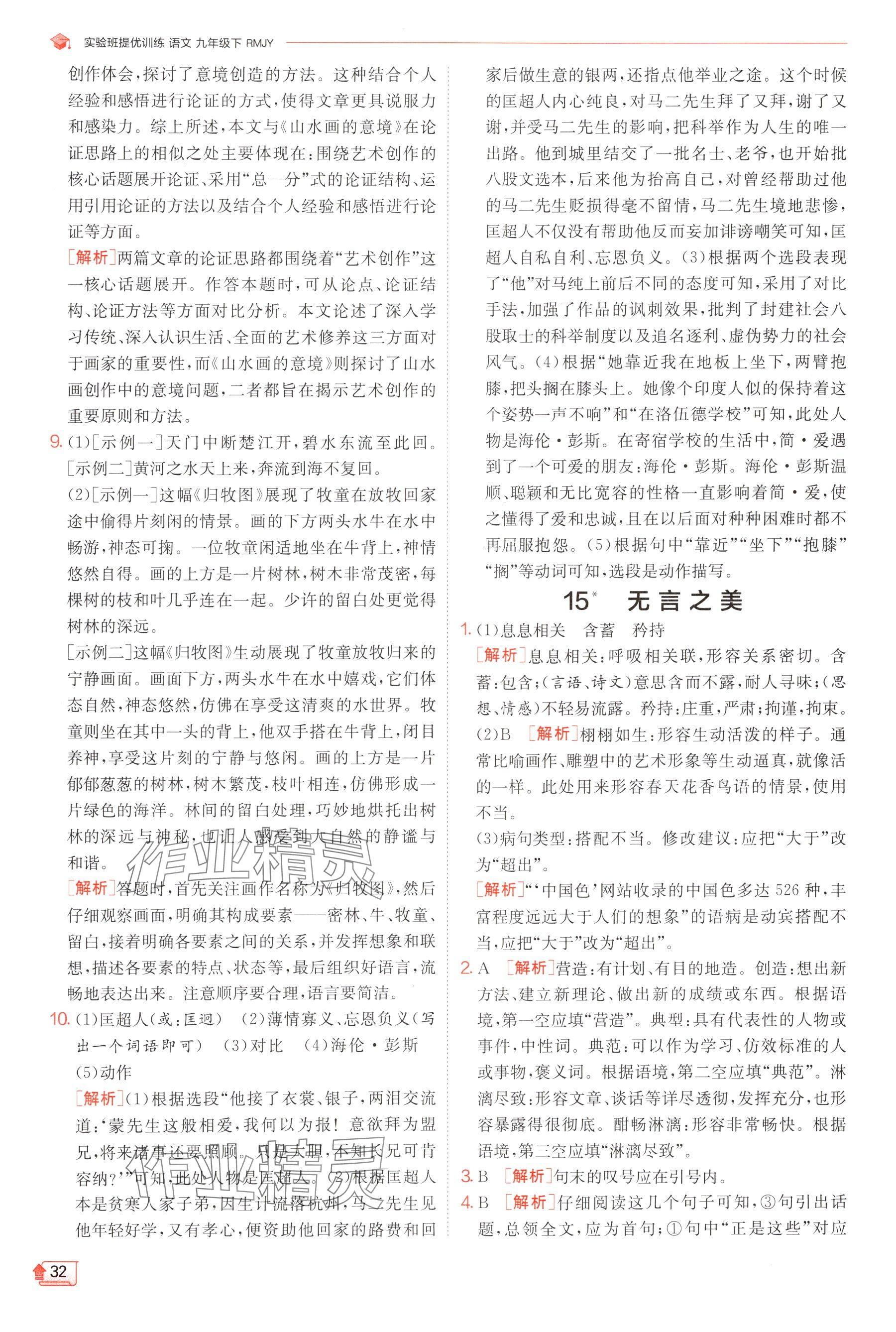 注:目前有些书本章节名称可能整理的还不是很完善,但都是按照顺序排列的,请同学们按照顺序仔细查找。练习册 2025年实验班提优训练九年级语文下册人教版 答案主要是用来给同学们做完题方便对答案用的,请勿直接抄袭。