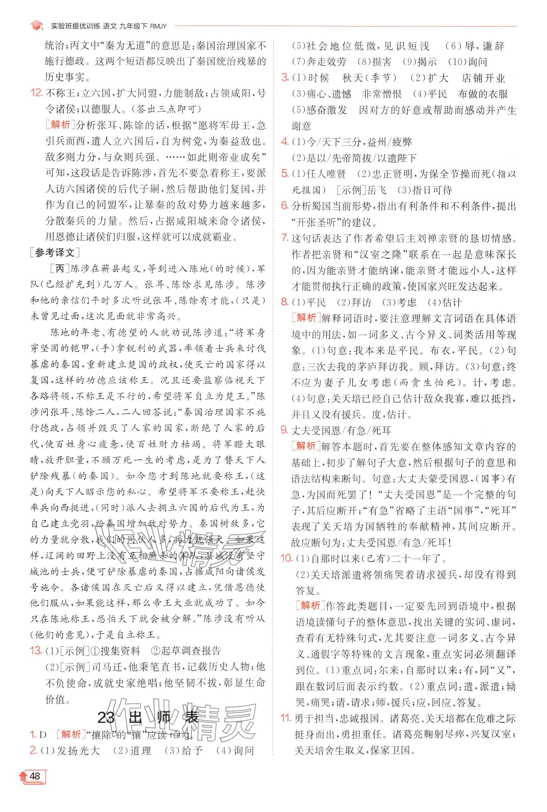 注:目前有些书本章节名称可能整理的还不是很完善,但都是按照顺序排列的,请同学们按照顺序仔细查找。练习册 2025年实验班提优训练九年级语文下册人教版 答案主要是用来给同学们做完题方便对答案用的,请勿直接抄袭。