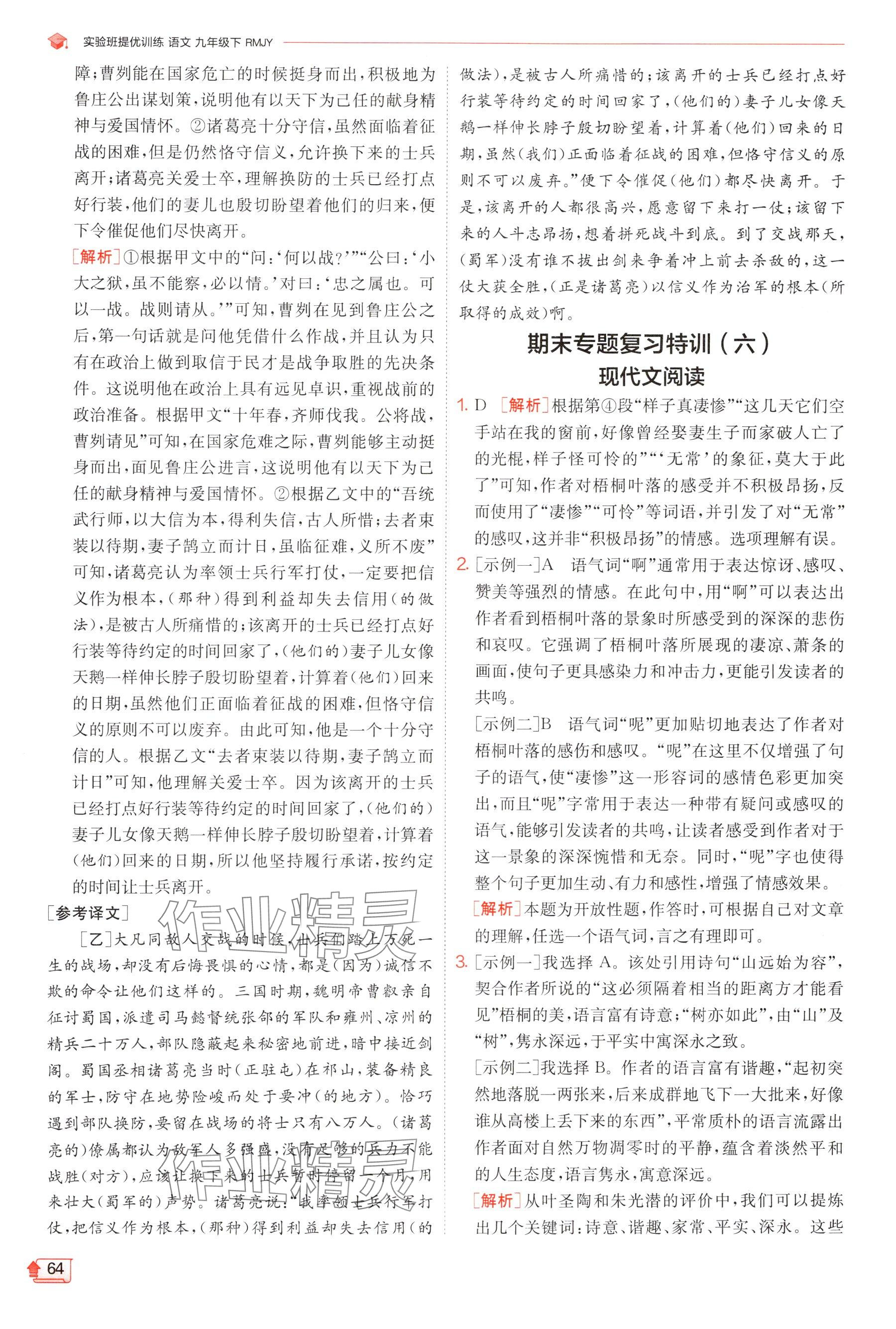 注:目前有些书本章节名称可能整理的还不是很完善,但都是按照顺序排列的,请同学们按照顺序仔细查找。练习册 2025年实验班提优训练九年级语文下册人教版 答案主要是用来给同学们做完题方便对答案用的,请勿直接抄袭。